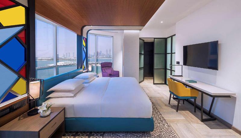 U hotelu, sobe su opremljene radnim stolom. U Andaz Dubai The Palm, sobe imaju i prostor za sedenje.