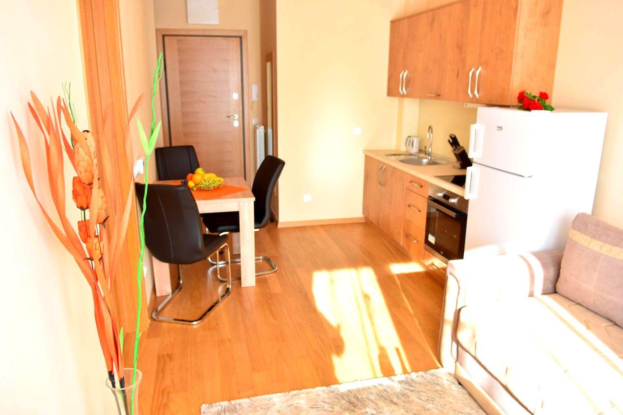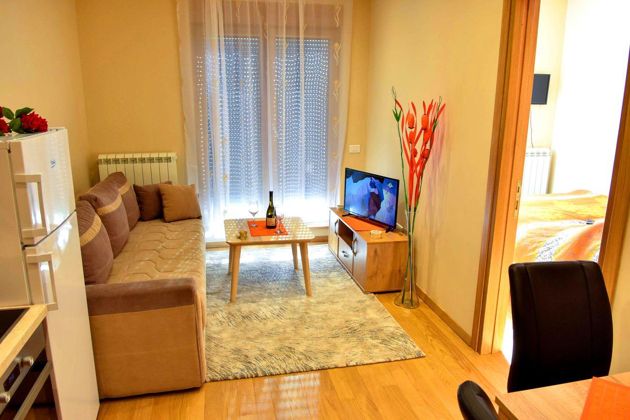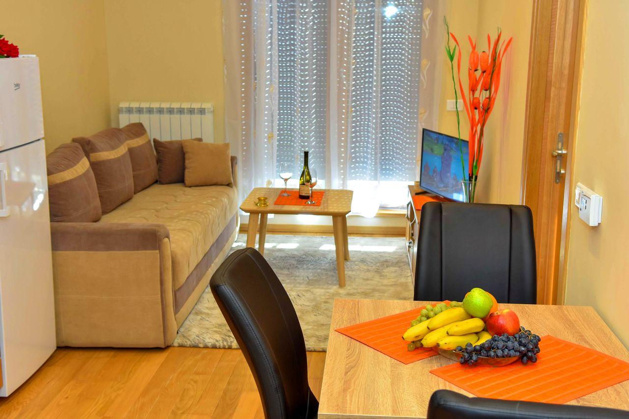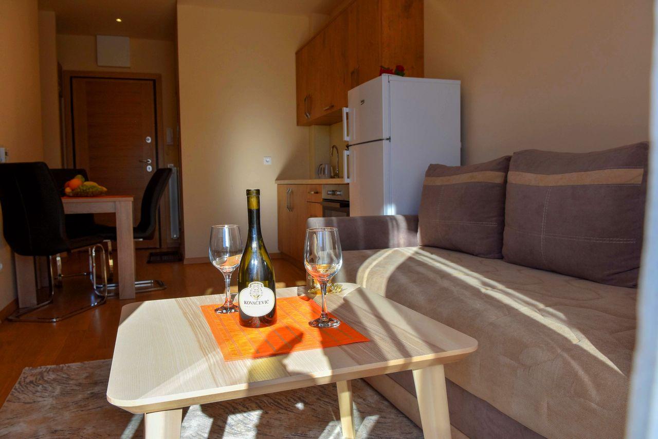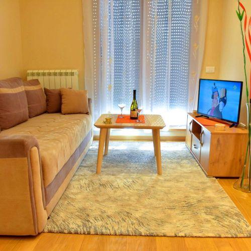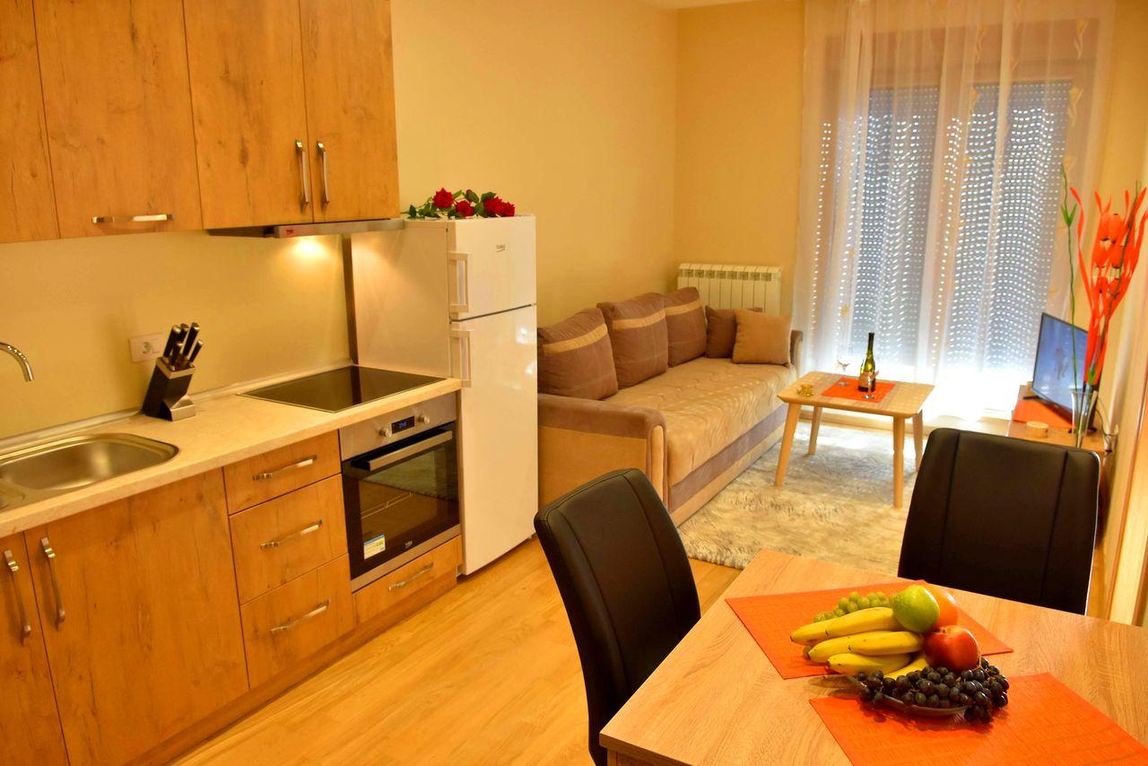 Apartman je luksuzno opremljen i potpuno nov, ima zasebnu spavaću sobu i veličine je 40 m2. Apartman ima internet konekciju, kao i kablovsku TV, pogodan je za smeštaj do 4 osobe. Kuhinja je potpuno opremljena. Gostima su obezbeđeni peškiri i posteljina.