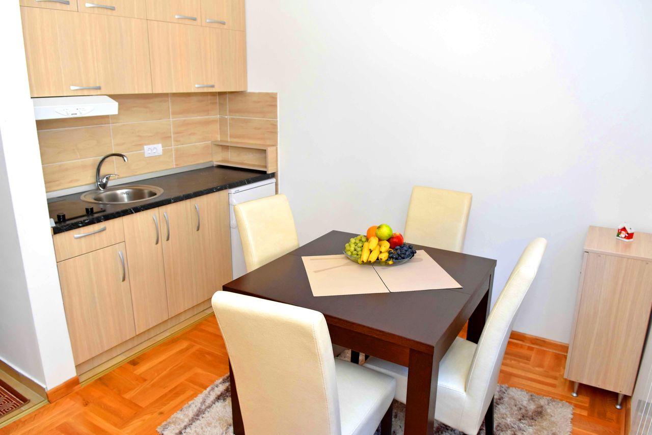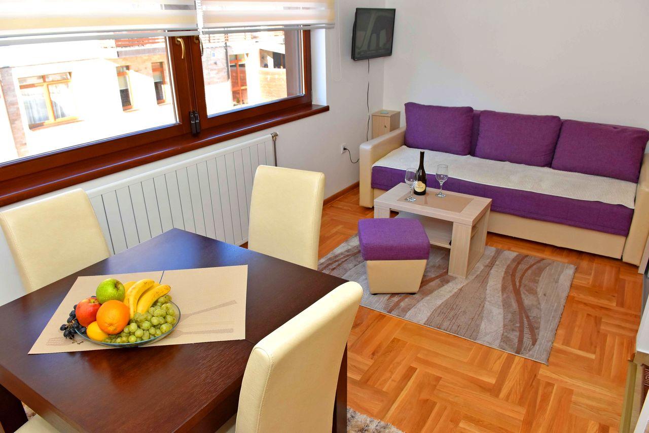 Apartman je luksuzno opremljen i potpuno nov, ima zasebnu spavaću sobu i veličine je 30 m2, Apartman ima internet konekciju, kao i kablovsku TV, pogodan je za smeštaj do 4 osobe. Kuhinja je potpuno opremljena. Gostima su obezbeđeni peškiri i posteljina.