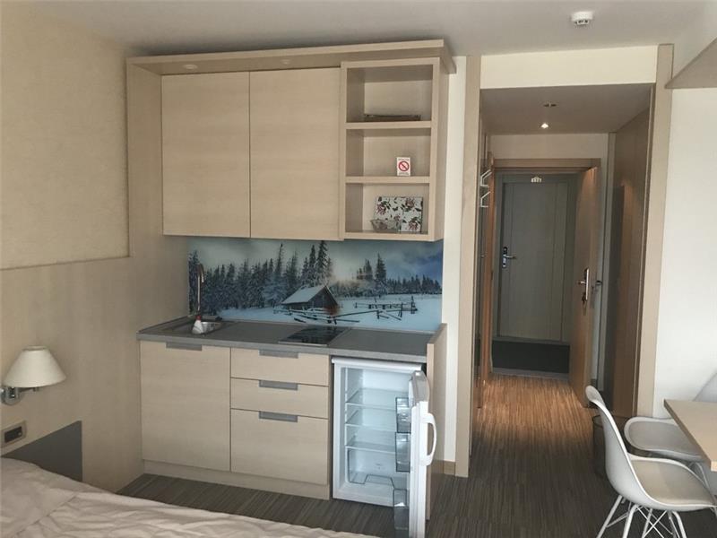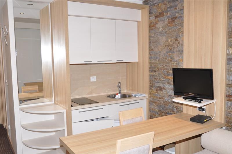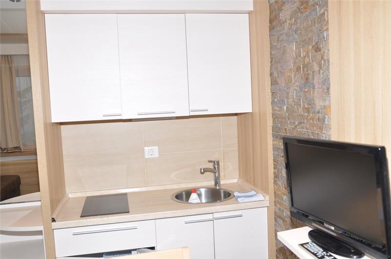Smeštaj (studio/apartman): kupatilo (tuš), mini kuhinja sa posuđem i priborom za jelo, ploča sa dve ringle, mini-frižider, sto i stolice, LCD TV