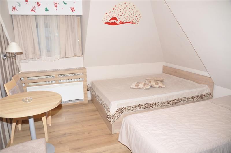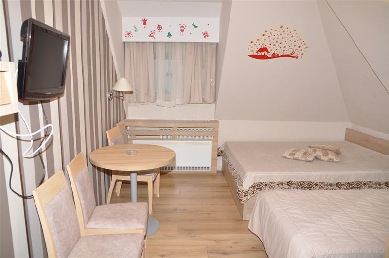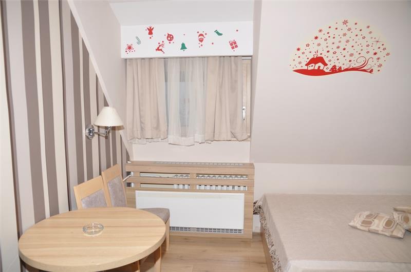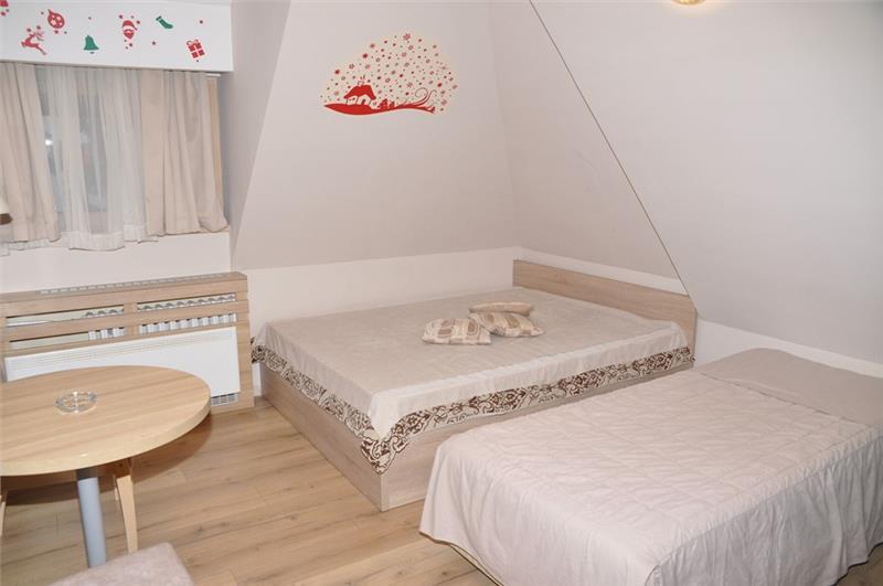 Studio 1+1 (2-3 osobe): kupatilo (tuš), jedna manja prostorija sa ležajem za jednu osobu i sofom na razvlačenje za dve osobe;