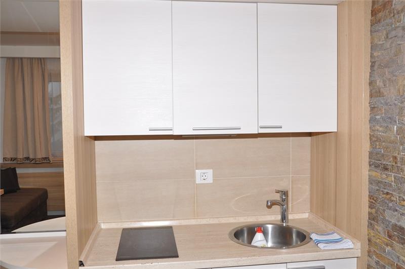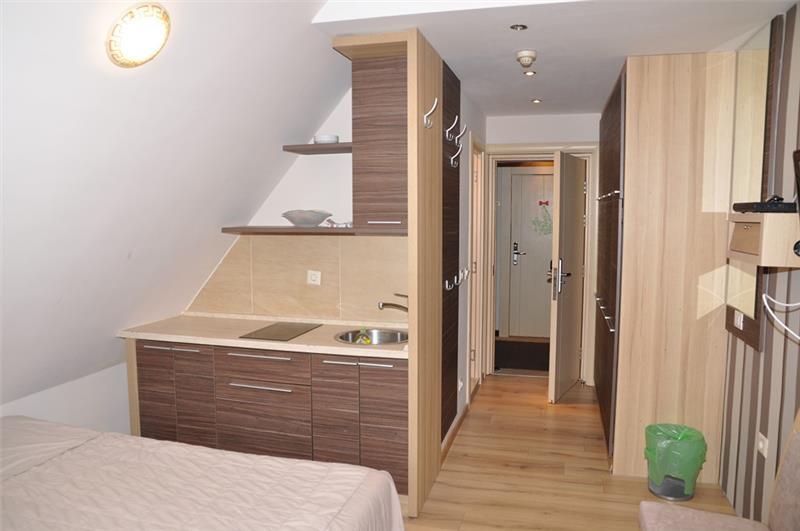 Studio 0+1 (1-2 osobe): kupatilo (tuš), jedna manja prostorija sa francuskim ležajem ili sofom na razvlačenje za dve osobe;