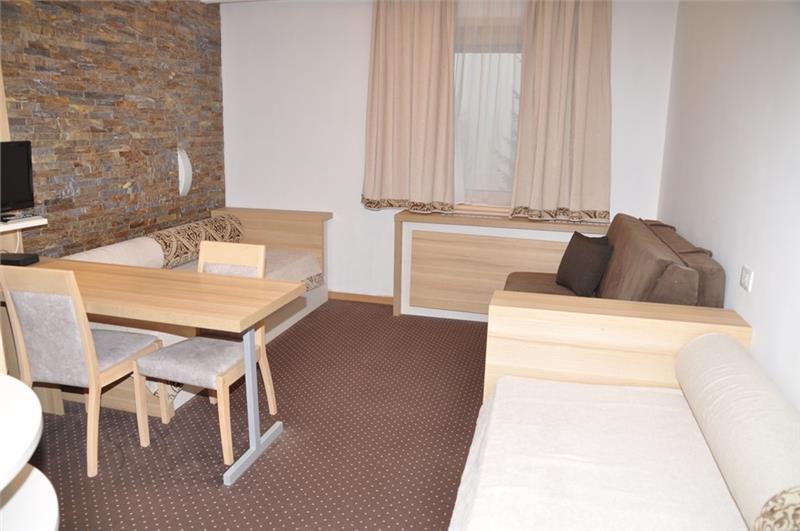 Apartman 2+2 (4-6 osoba): kupatilo (tuš), dnevna soba sa sofom na razvlačenje za dve osobe, spavaća soba sa francuskim ležajem, spavaća soba sa 2 singl ležaja.