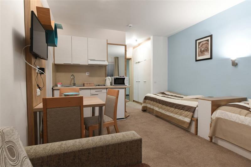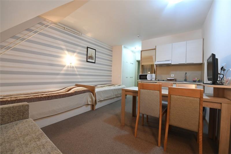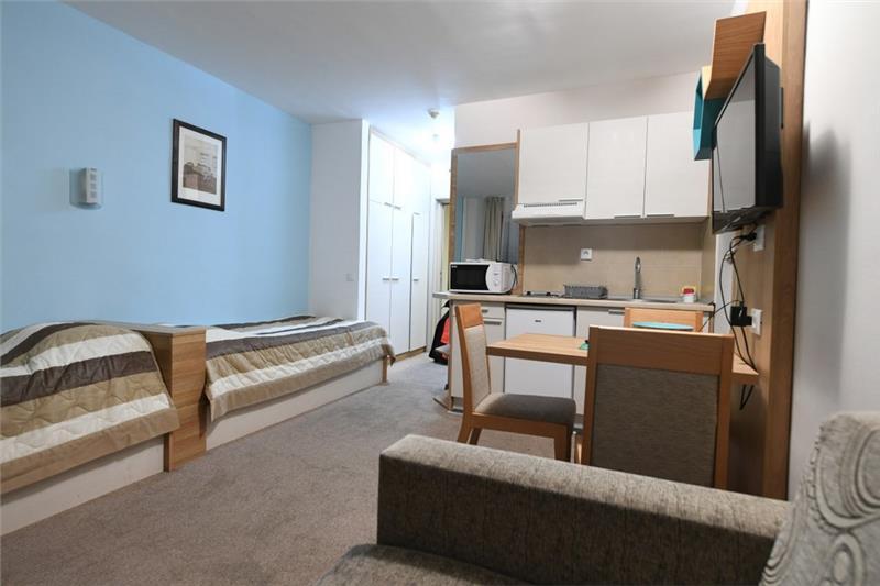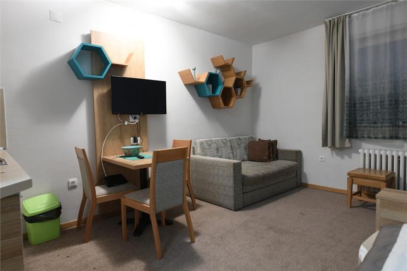 Studio 0+1 (1-2 osobe): kupatilo (tuš), jedna manja prostorija sa francuskim ležajem ili sofom na razvlačenje za dve osobe;