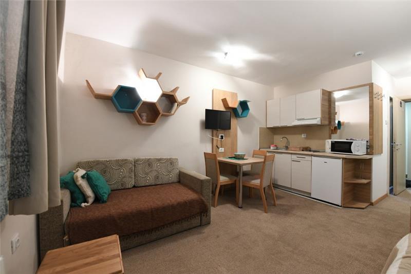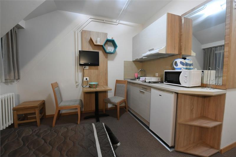 Smeštaj (studio/apartman): kupatilo (tuš), mini kuhinja sa posuđem i priborom za jelo, ploča sa dve ringle, mini-frižider, sto i stolice, LCD TV
