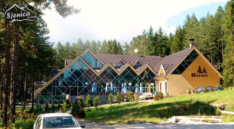Hotel Borovi nalaze se na obodu grada između guste borove šume i rijeke Jablanice.To je savrmeni hotel,čija arhiktetura se uklapa u ambijentalnu celinu.Hotel raspolaže sa 120ležaja u jednokrevetnim,dvokrevetnim sobama i šest apartmana,etno restoranom,banket salom sa 700 stolica i galerijom od 300stolica i kongresnom salom.Kao takav idealan je za odmor,pripremu sportskih ekipa i kongresnih turizam.U brovoj šumi nadomak hotela uređena je trim staza za rekreativce i aktivne sportiste,a ispred hotela sagrađeno je veštačko jezero ,površine 175x20m,prosečna dubina jezera je 1,5m. U nacionalnom restoranu između ostalog u ponudi su gastronomski specijaliteti zdrave hrane sa Pešterske visoravni:sjenički sir,sjeničko jagnje ispod sača i na žaru,teletina ispod sača,heljdopita,sjenička pita i sveža pastrmka. Hotel Borovi svojim kapacitetima i konforom su najbolji i najlepši hotel u regionu i kao takvi su nosilac razvoja turizma u Sjenici.Pored udobnog smeštaja i gastronomskih specijaliteta,gosti u ponudi imaju i obilazak lokaliteta,koji Sjenicu i Peštersku visoravan svrstavaju Sjenicu u sam vrh novi turističkih destinacija:kanjon reke ,,Uvac“ sa svojim meandrima,ledena pećina,ski centar Žari, ,manastir Kumanica,džamija sultan Valide,Peštersko polje,farma Caricina..