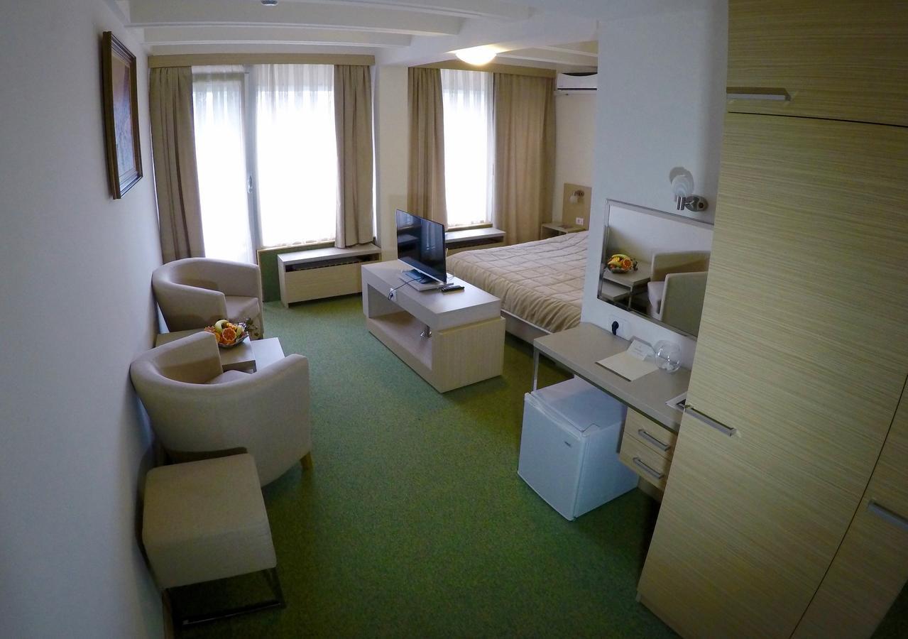Sobe su svetle i imaju pogled na centar Vrnjačke Banje. Svaka soba sadrži klima-uređaj, TV sa kablovskim kanalima i mini-bar, kao i kupatilo sa kadom ili tušem, fenom za kosu, papučama i bademantilima.