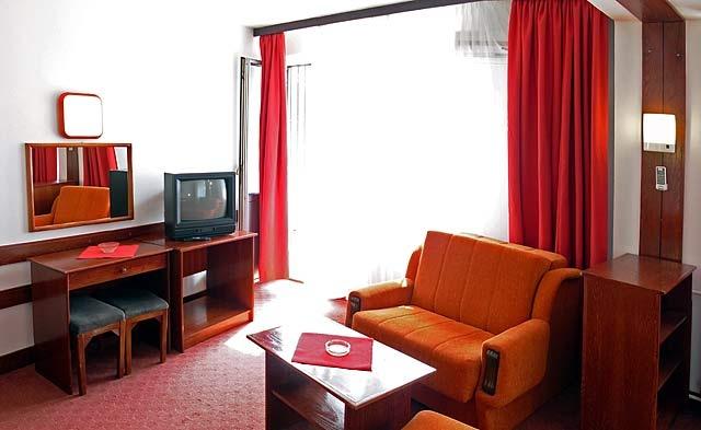 Sa sa 540 postelja, 2 apartmana, kongresnom salom (210 sedista), dva bazena sa termalnom vodom, saunom, automatskom kuglanom i streljanom, dva terena za kosarku, tri terena za mali fudbal, teren za odbojku na pesku, zatvorenim bazenom I ostalim sadržajima to je hotel najvećeg kapaciteta i najraznovrsnije ponude. U restoranima imate brojne kvalitetne specijalitete raznih svetskih kuhinja uz specijalne zahteve svih ukusa i gastronomskih trendova.