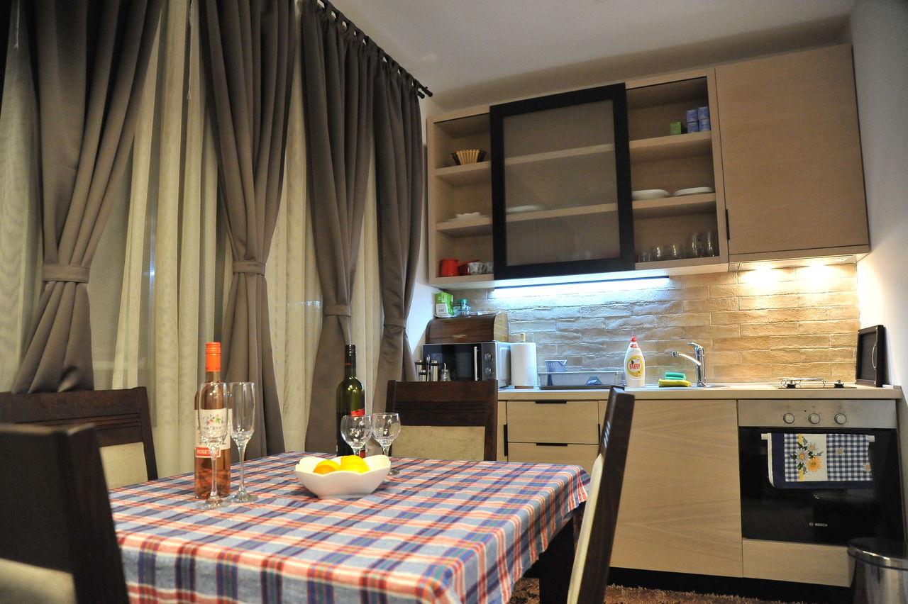 Apartman br.2 (45m2) sadrži, dnevni boravak opremnjen trosedom na razvlačenje i foteljom na razvlačenje TV, komplet opremljenom kuhinjom, spavaćom sobom koja sadrži francuski ležaj, plakare, komodu i TV, hodnik sa plakarima, kupatilo i terasom (internet, kablovska, parking,lift).