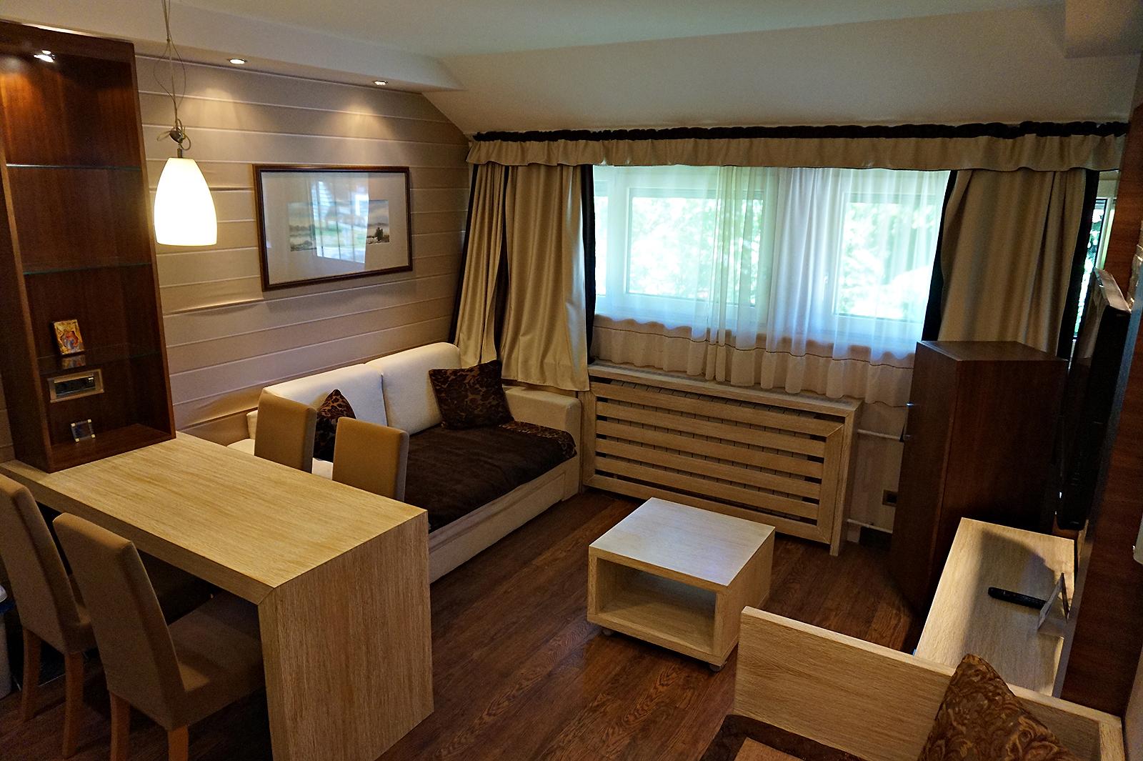 Apartman čini dnevna soba sa dva kreveta na razvlačenje i idealan je za smeštaj od 1 do 4 osobe. Od dodatnih sadržaja poseduje LCD TV, kablovsku TV, WiFi internet i boks za odlaganje ski opreme.