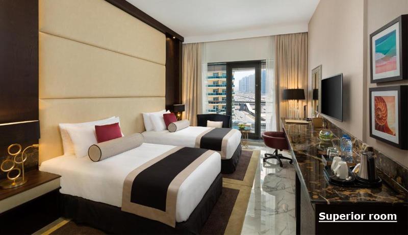 Sve sobe u hotelu su klimatizovane i imaju prostor za sedenje, flat-screen TV sa satelitskim kanalima, sef i privatno kupatilo sa tušem, besplatnim toaletnim potrepštinama i fenom za kosu. Svaka soba uključuje čajnik, dok su neke sobe opremljene balkonom, a druge nude pogled na bazen. U hotelu Millennium Place Dubai Marina, sobe imaju posteljinu i peškire.