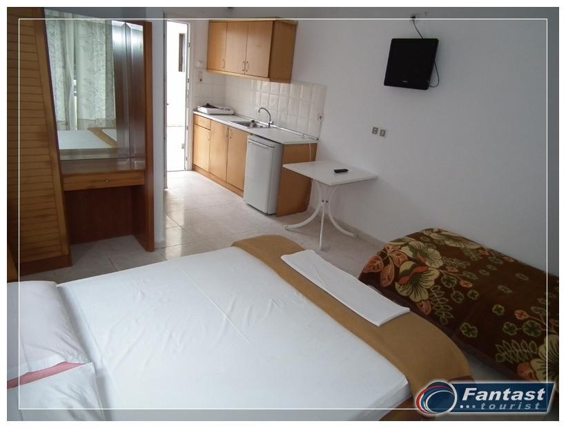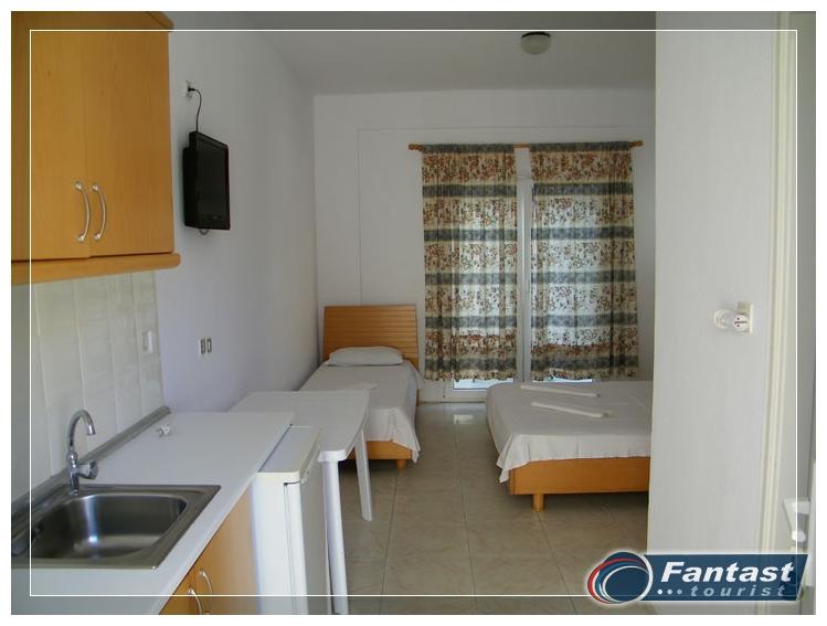 Nalazi se u starom delu Sartija, na samo 30m od mora, u delu gde je ponuda plaže u Sartiju i najbogatija. Tu su brojni restorani, taverne, beach barovi, centar vodenih sportova. Studiji se nalaze u visokom prizemlju i na prvom spratu. Svi imaju SAT TV i klima uređaj čije se koriščenje doplaćuje.