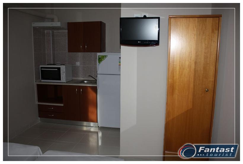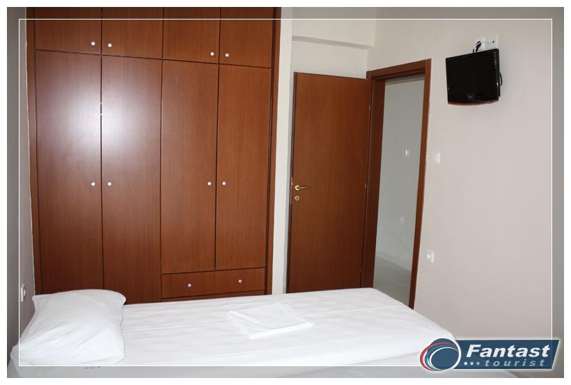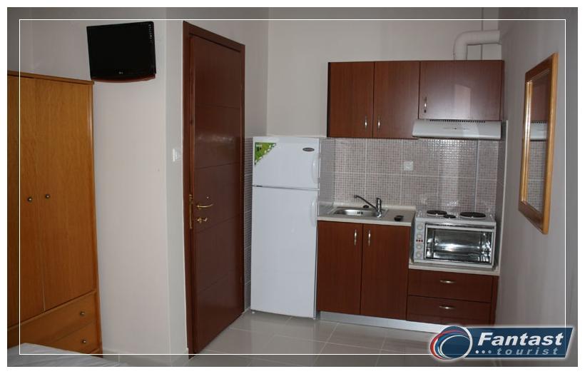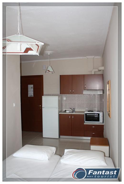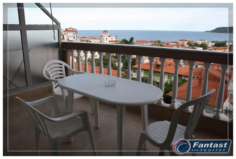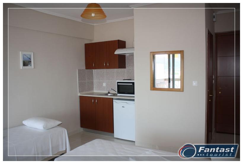 Nalazi se u starom delu Sartija na uzvišenju blizu crkve na oko 220m od gradske plaže, a isto toliko i od najbližih uvala. Na samo 120m od centra, a opet daleko od buke i vreve. Renovirana je 2010. godine i nudi signal za internet, SAT TV kao i klima uređaj čije je korišćenje uključeno u cenu. Svi imaju prostrane terase, a većina studija ima neverovatan panoramski pogled na more i ceo Sarti.