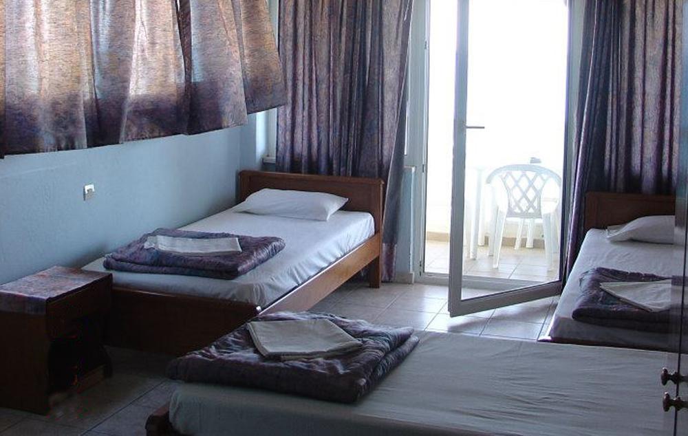Opis: U našoj ponudi su dvokrevetna i trokrevetna studija koja se nalaze na drugom spratu. Svaki studio ima opremljenu kuhinju, kupatilo/wc, terasu, TV, WiFi internet, klima uređaj (uz doplatu na licu mesta, od 5€ dnevno). Neki apartmani imaju direktan ili bočni pogled na more a neki pogled na ulicu.