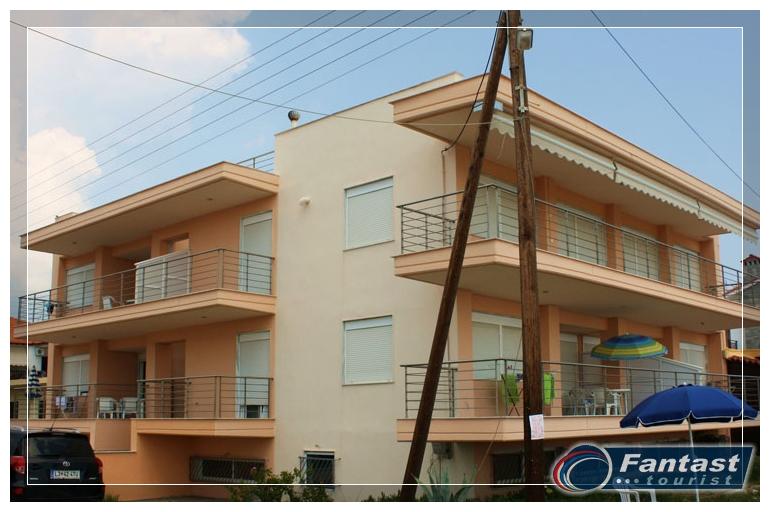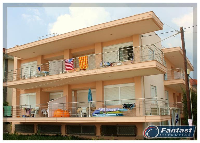 Nalazi se uz plažu u novom delu Sartija, poznata kao kuća sa najprostranijim apartmanima i fantastičnim direktnim ili bočnim pogledom na more. Apartmani se nalaze u visokom prizemlju i na prvom spratu. Svi imaju izuzetno prostrane terase. Svi apartmani imaju TV, signal za bežični internet kao i klima uređaj čije je korišćenje uključeno u cenu u julu i avgustu.