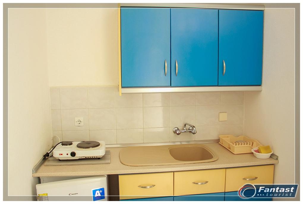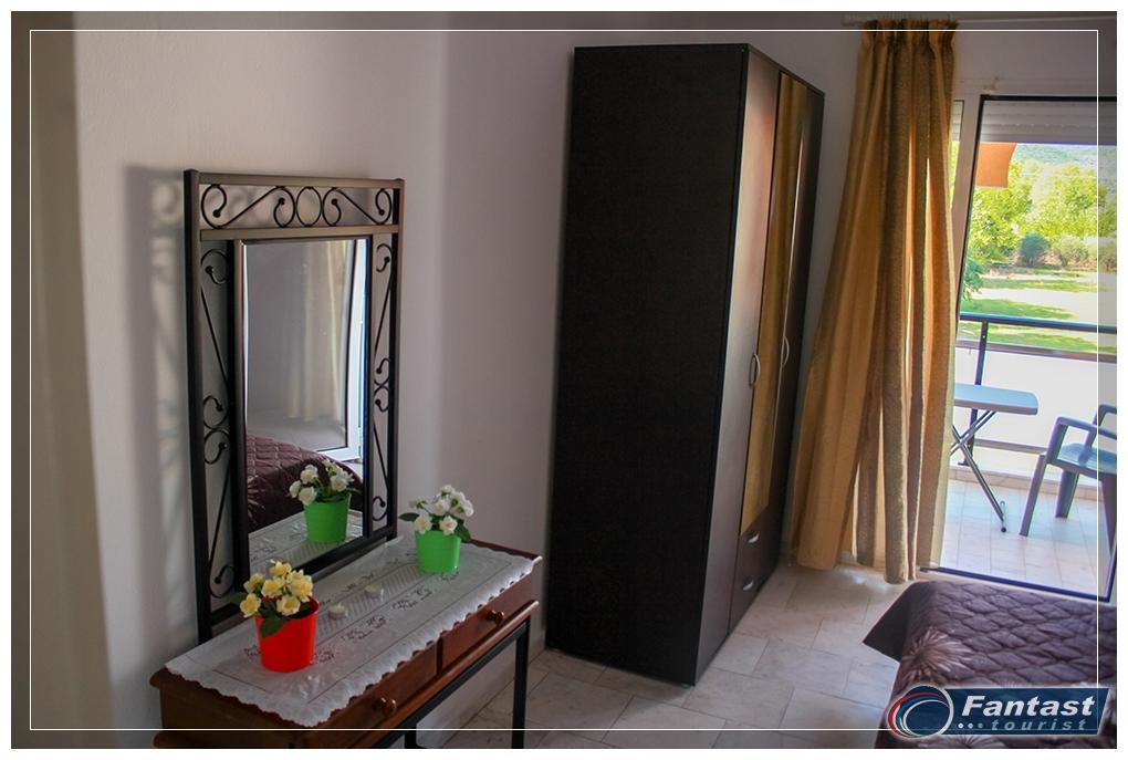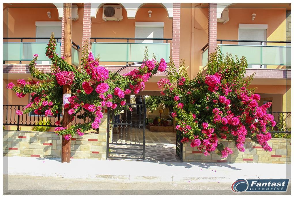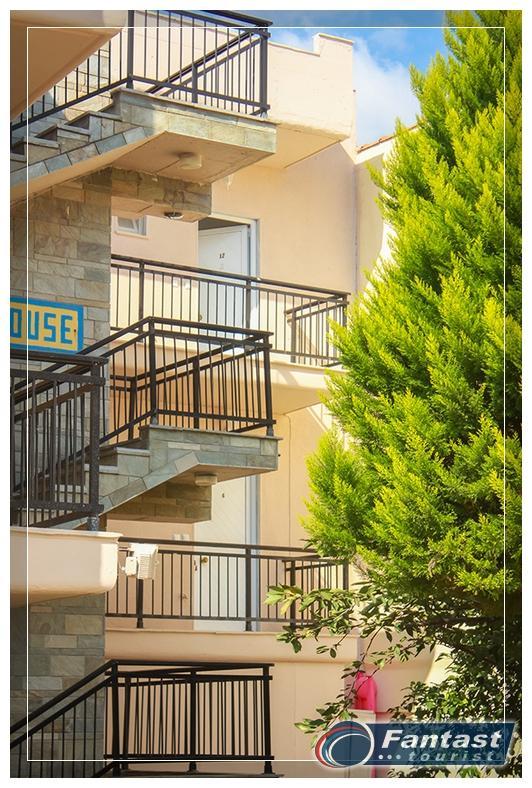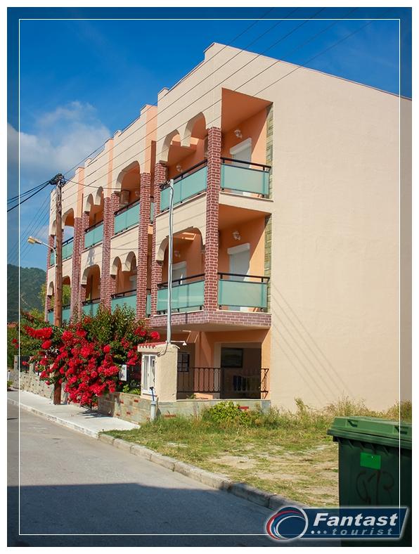 Nalazi se u novom delu Sartija na samo 70m od najlepšeg dela peščane plaže u Sartiju. Apartmani za 2 ili 3 osobe se nalaze na drugom spratu, a glavni kvalitet je kuhinja odvojena od spavaće sobe. Svi apartmani imaju SAT TV, signal za bežični internet, kao i klima uređaj čije se korišćenje posebno doplaćuje. Apartmani 7,8,9 i 10 imaju bočni pogled na more.