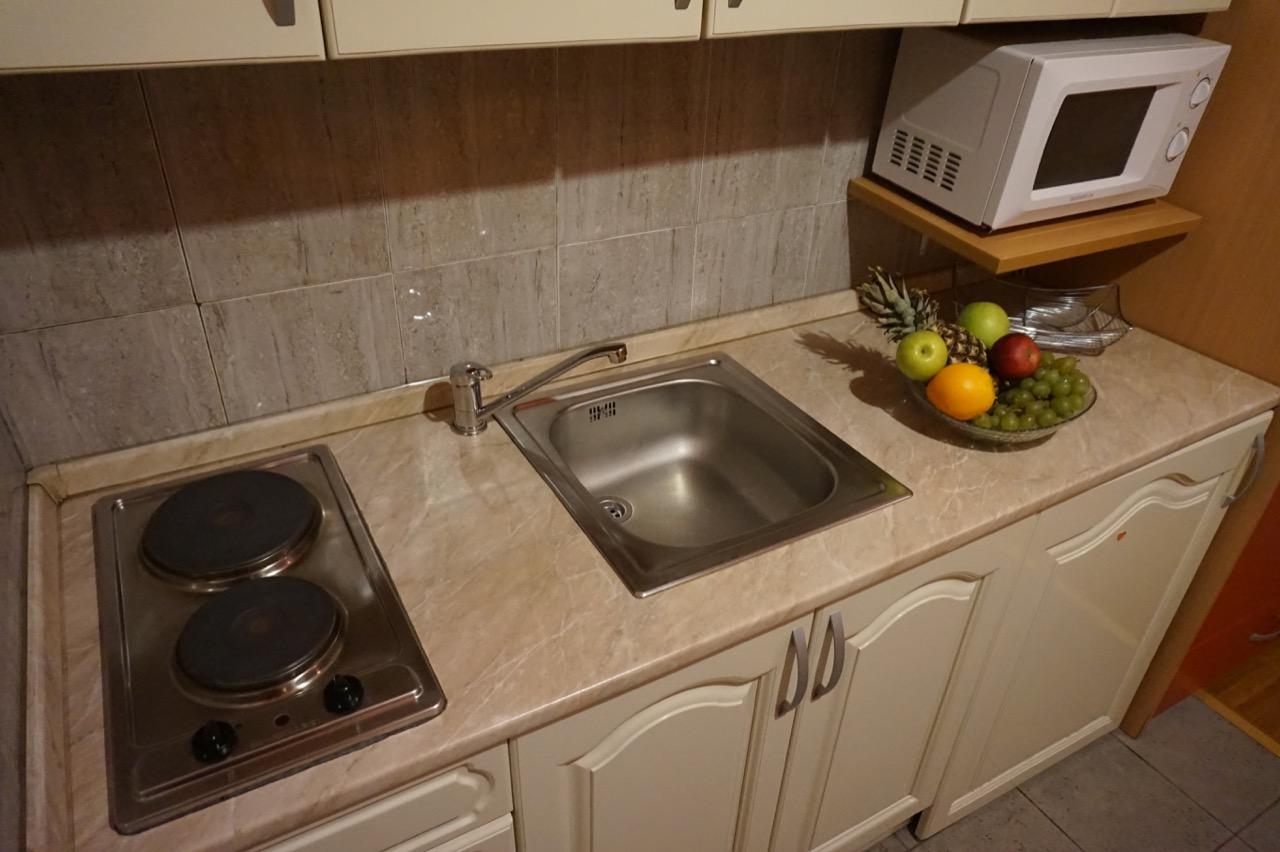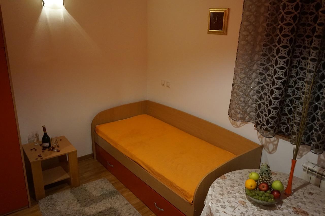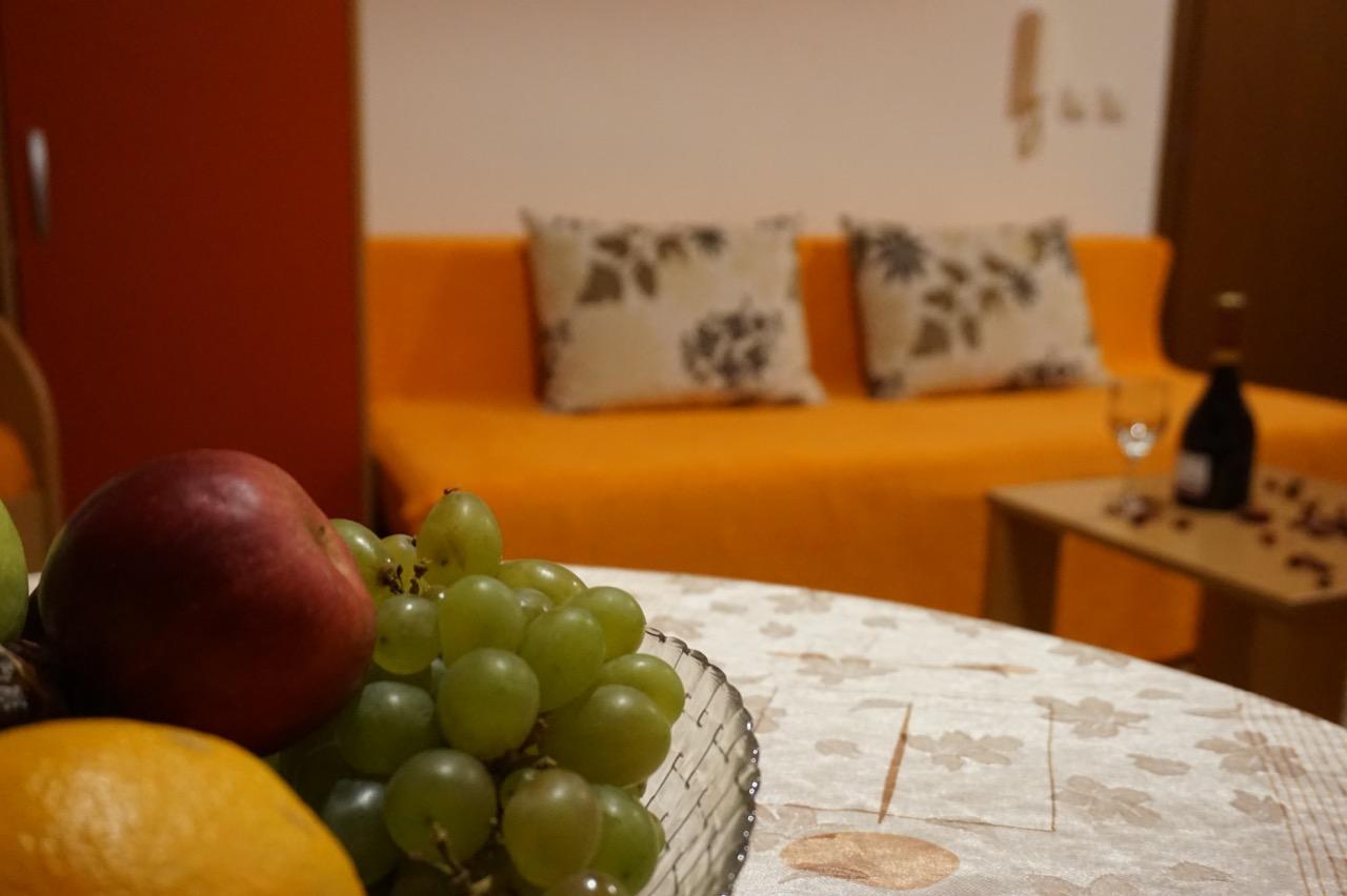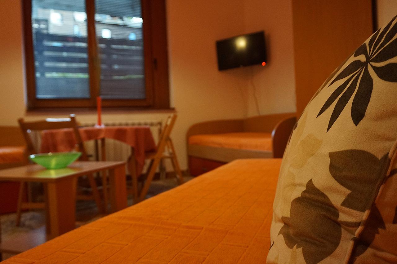 Apartman može da primi maksimalno do 5 osoba. Poseduje dva kreveta na razvlačenje i sofu koja je takođe na razvlačenje. Apartman je opremljen centralnim grejanjem, ima kompletnu mini kuhinju, frižider, mikrotalasnu pećnicu, SAT TV, WiFi i kupatilo sa tuš kabinom, posteljinu i peškire.