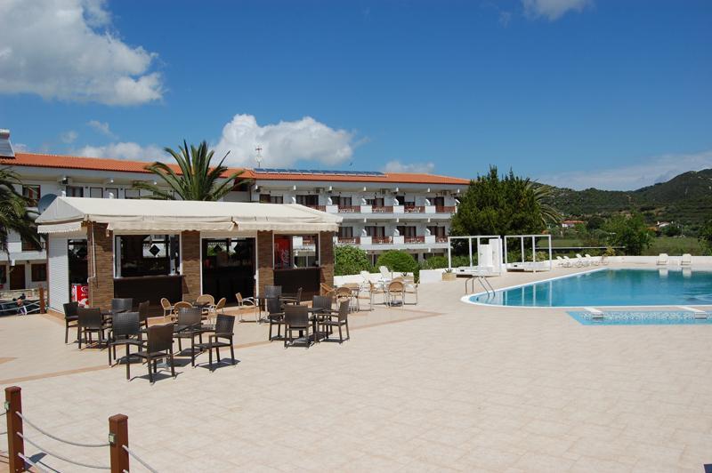 Nalazi se na samoj plaži u sklopu hotela Blue Sea. Studiji za 2, 3 ili 4 osobe se nalaze u prizemlju, dok se apartman za 4 osobe i studio za 3 osobe nalaze na I spratu. Svi imaju TV i klima uređaj čije je korišćenje uključeno u cenu. Gosti imaju pravo na korišćenje bazena, đakuzija i dečijeg bazena. Moguća je doplata polupansiona u hotelskom restoranu.