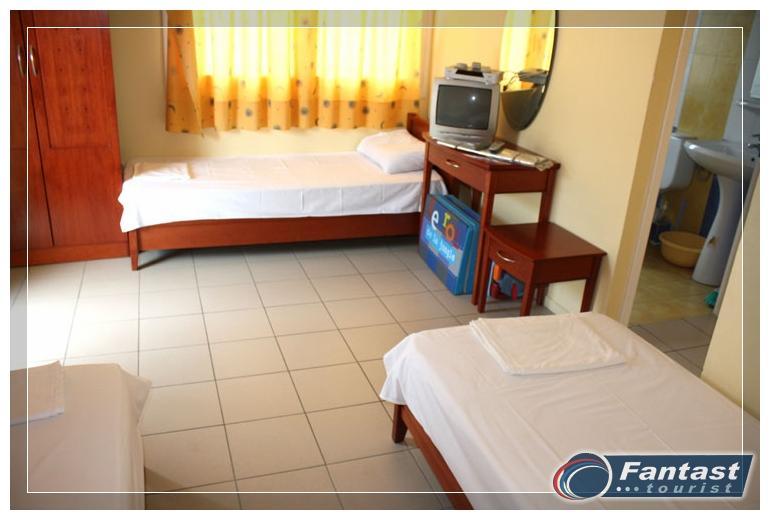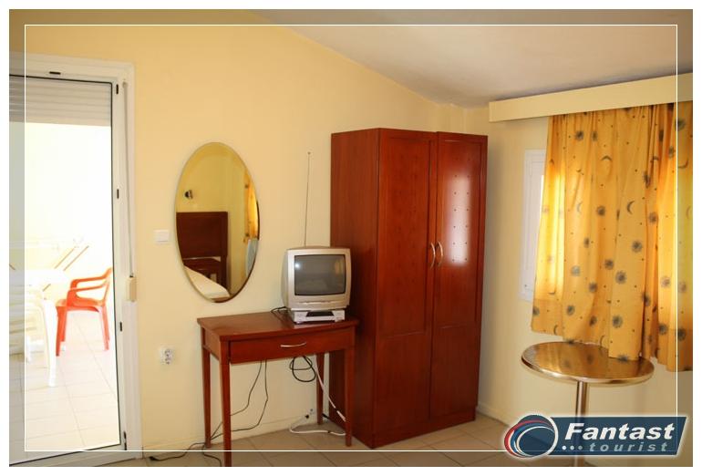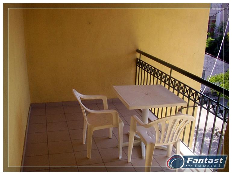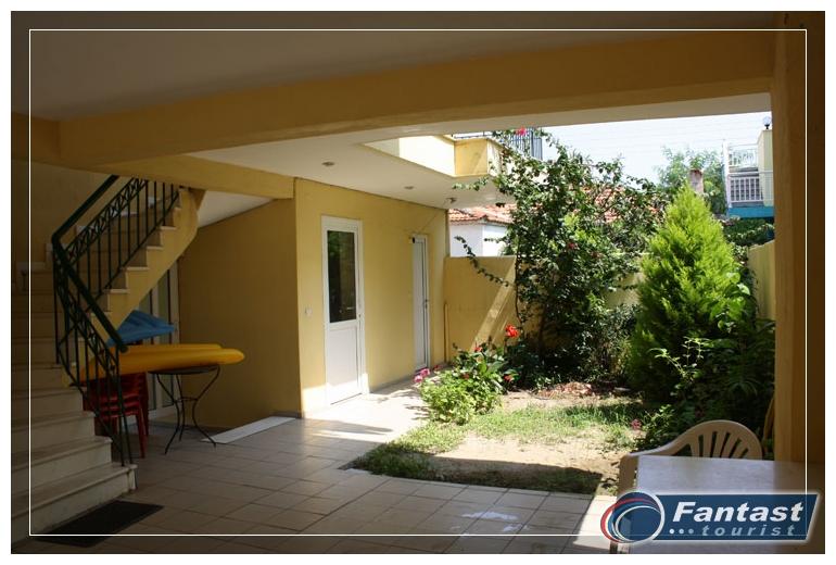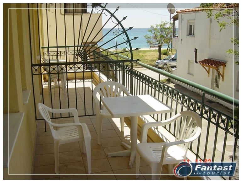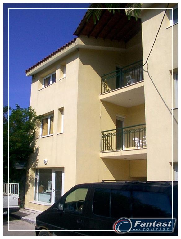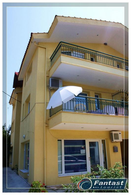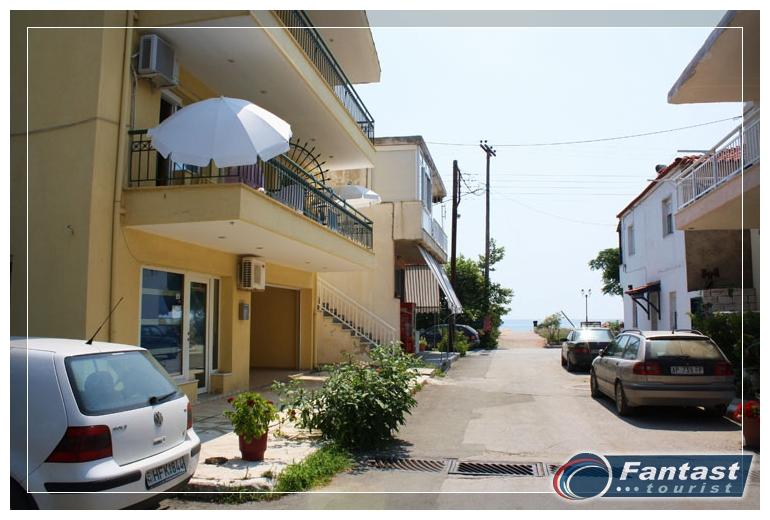 Smeštena je u neposrednoj blizini plaže. Svi studiji imaju SAT TV iklima uredjaje čije je korišćenje uključeno u cenu. Dva studija imaju terase sa pogledom na ulicu, a dva su sa bočnim pogledom na more. Zbog svoje pozicije i kvaliteta smeštaja ovo je jedna od najtraženijih kuća u našoj ponudi. Na 20m od kuće je peščani uredjeni deo plaže, a na oko 120m nalazi se jedini stenovito-peščani deo plaže u Sartiju, poznatiji po restoranu "Vrahakia" (gr.prev. vrahaki-stena).