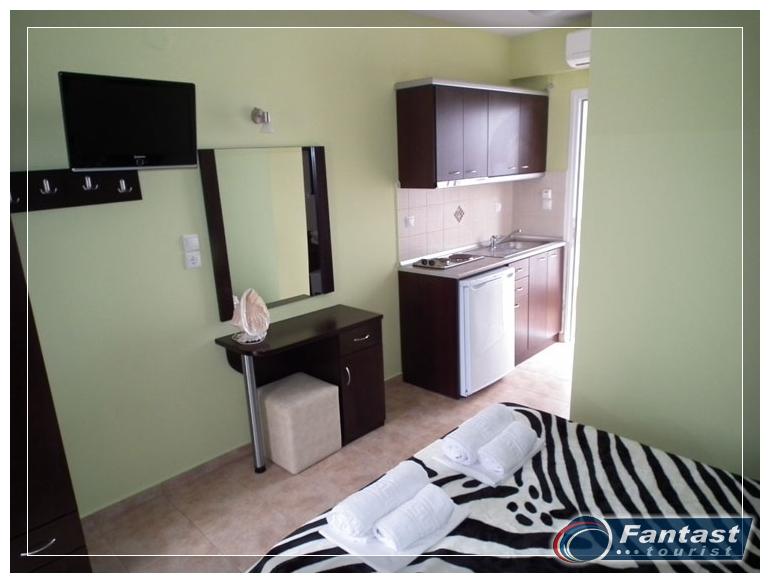 Nalazi se u starom delu Sartija na samo 20 metara od mora. Jedan studio se nalazi u prizemlju, dok su ostali na prvom spratu i imaju terase sa bočnim pogledom na more. Svi imaju SAT TV, signal za bežični internet kao i klima uređaj čije je korišćenje uključeno u cenu. Zbog svoje pozicije i kvaliteta smeštaja ovo je jedna od najtraženijih kuća u našoj ponudi. Na 20m od kuće je uredjena peščana plaža, malo igralište za decu.