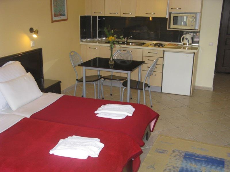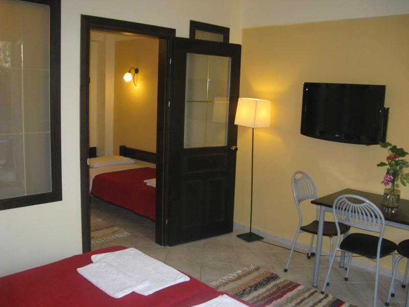 Hotel Eolos (Aeollos) se nalazi u mirnom delu Pefkohorija, na svega dvadesetak metara udaljenosti od plaže. Sastoji se od studija i apartmana, smeštenih u niskom prizemlju. Smeštajne jedinice su trokrevetni studiji/apartmani, koji imaju mogućnost ubacivanja pomoćnog ležaja. Sve smeštajne jedinice hotela poseduju kuhinju, kupatilo i sopstvenu terasu, i opremljene su klima-uređajem (uz doplatu na licu mesta u iznosu od 5€ dnevno), TV-om, fenom i sefom (uz doplatu na licu mesta: 10 dana – 15€) Hotel Eolos poseduje i veoma lep bazen, što je, uz činjenicu da se ovi apartmani sa bazenom u Pefkohoriju nalaze skoro na samoj plaži, i više nego dovoljna preporuka da svoje letovanje u Grčkoj provedete upravo ovde. Za goste hotela korišćenje ležaljki i boravak na bazenu podrazumevaju korišćenje usluge pool-bara i to po principu porudžbine bilo kog pića ili sendviča (u ponudi su sve vrste kafa, bezalkoholnih i alkoholnih pića, sladoledi, pice, sendviči i slično). Radno vreme bazena je svakog dana od 10 do 19 časova, dok je bar otvoren do 23 časa (ili duže ako ima gostiju). Hotel Eolos nema sopstveni parking.