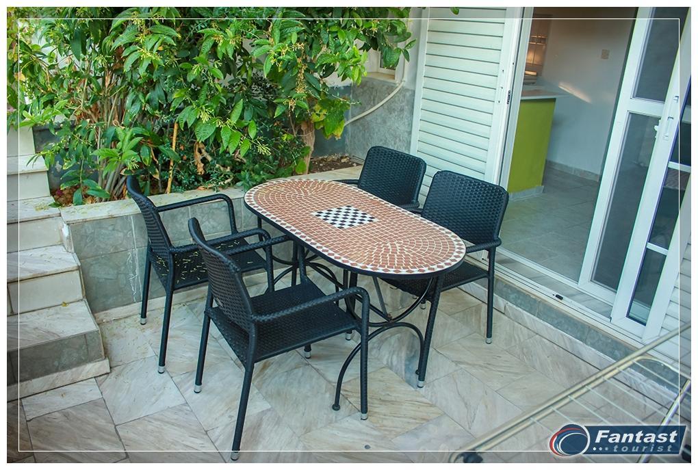 Renovirana 2011. godine, nalazi se u starom delu Sartija u blizini crkve na 180m od mora. Studiji za 2-3 osobe se nalaze na prvom spratu, dvokrevetni studio na drugom spratu, a duplex i studio za 4 osobe u prizemlju. Terase studija br.1 i 2 imaju pogled na more, a studija br.3, 4 i 7 na dvorište. Svi studiji imaju SAT TV, signal za bežični internet i klima uređaj čije se korišćenje doplaćuje