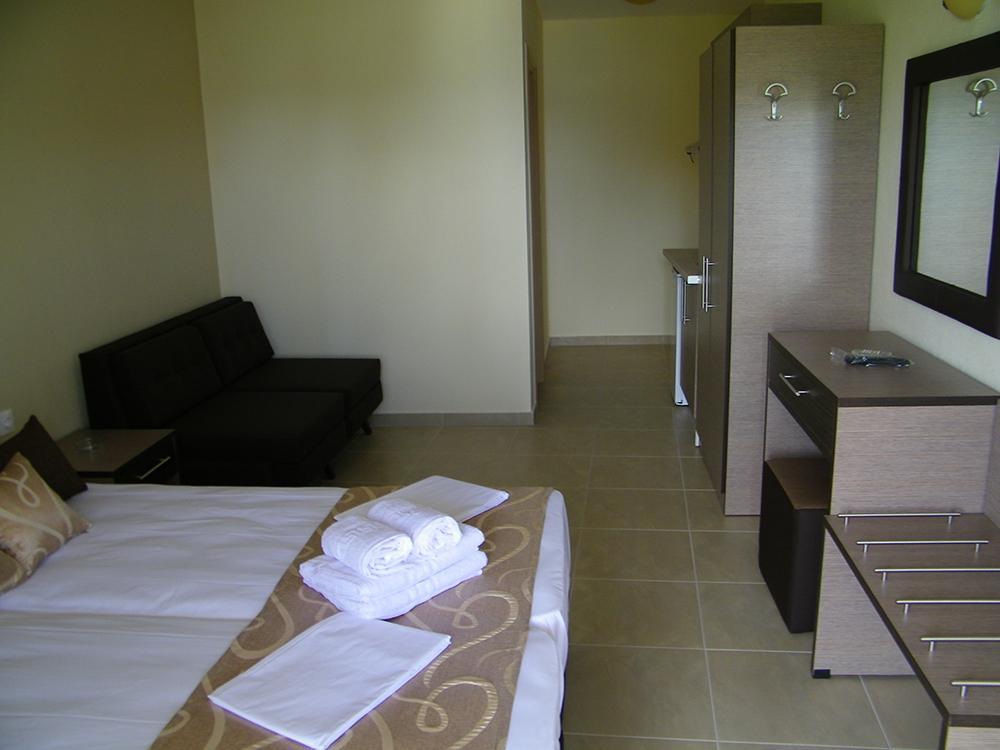 Novoizgrađeni kompleks Kastro se nalazi na samoj plaži mesta Toroni, odmah pored starije istoimene kuće u neposrednoj blizini hotela Blue Sea. U ponudi su trokrevetni i četvorokrevetni studiji na prvom spratu, svi sa prostranim terasama sa direktnim pogledom na more. Svi imaju SAT TV, signal za besplatno korišćenje bežičnog interneta kao i klima uređaj čije je korišćenje uključeno u cenu. Cena uključuje i svakodnevno čišćenje studija kao i zamenu peškira i posteljine na 3 odnosno 4 noćenja a u zavisnosti od trajanja smene. U okviru kompleksa gostima su na usluzi mala prodavnica sa poslastičarnicom i pekarom kao i veliko dvorište sa manjim dečijim igralištem i roštiljem.