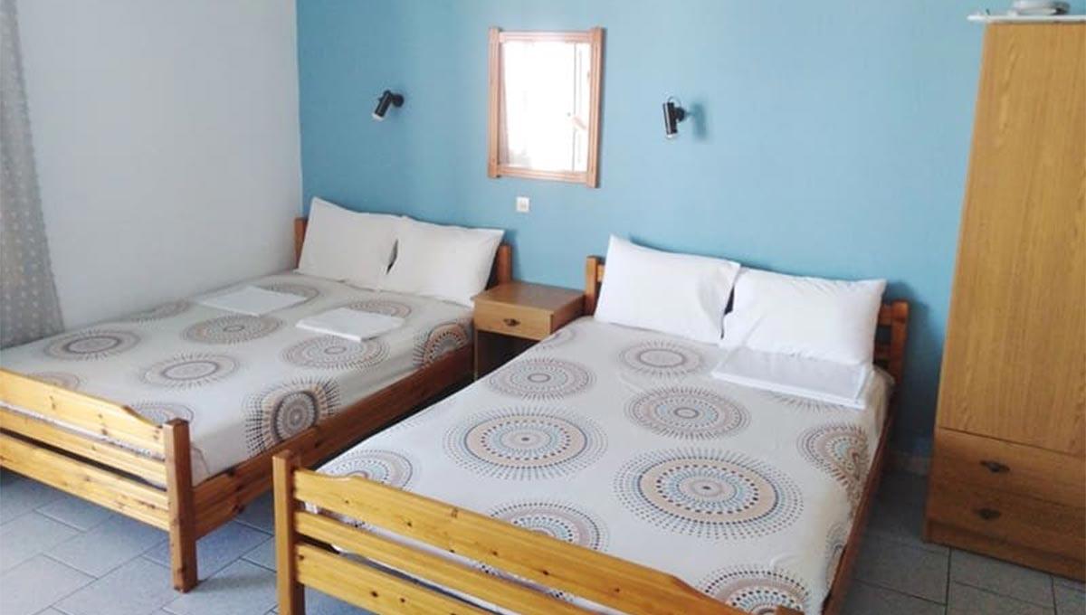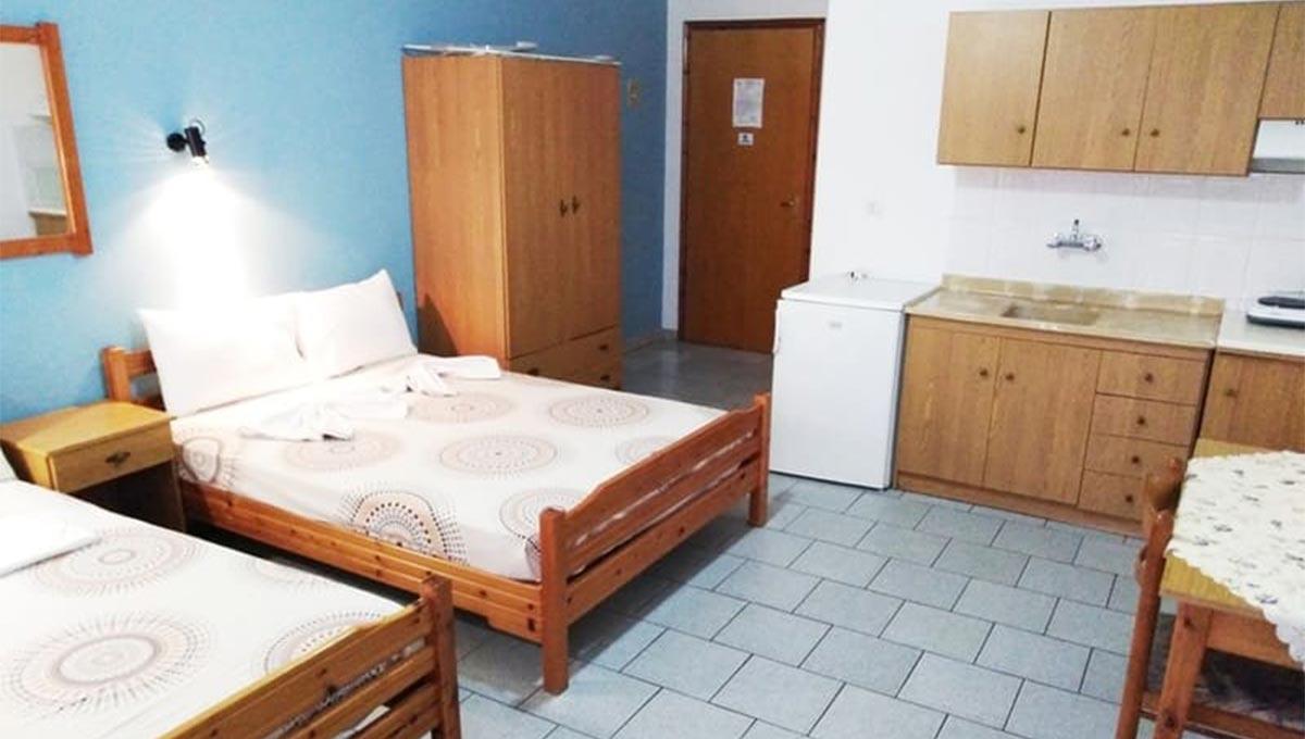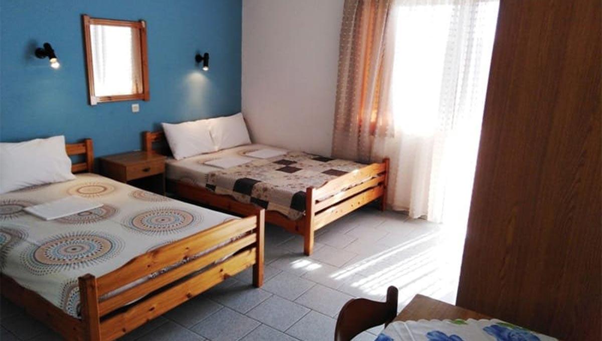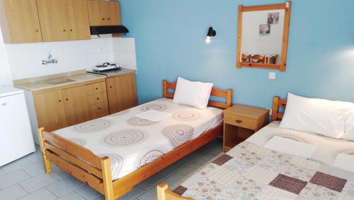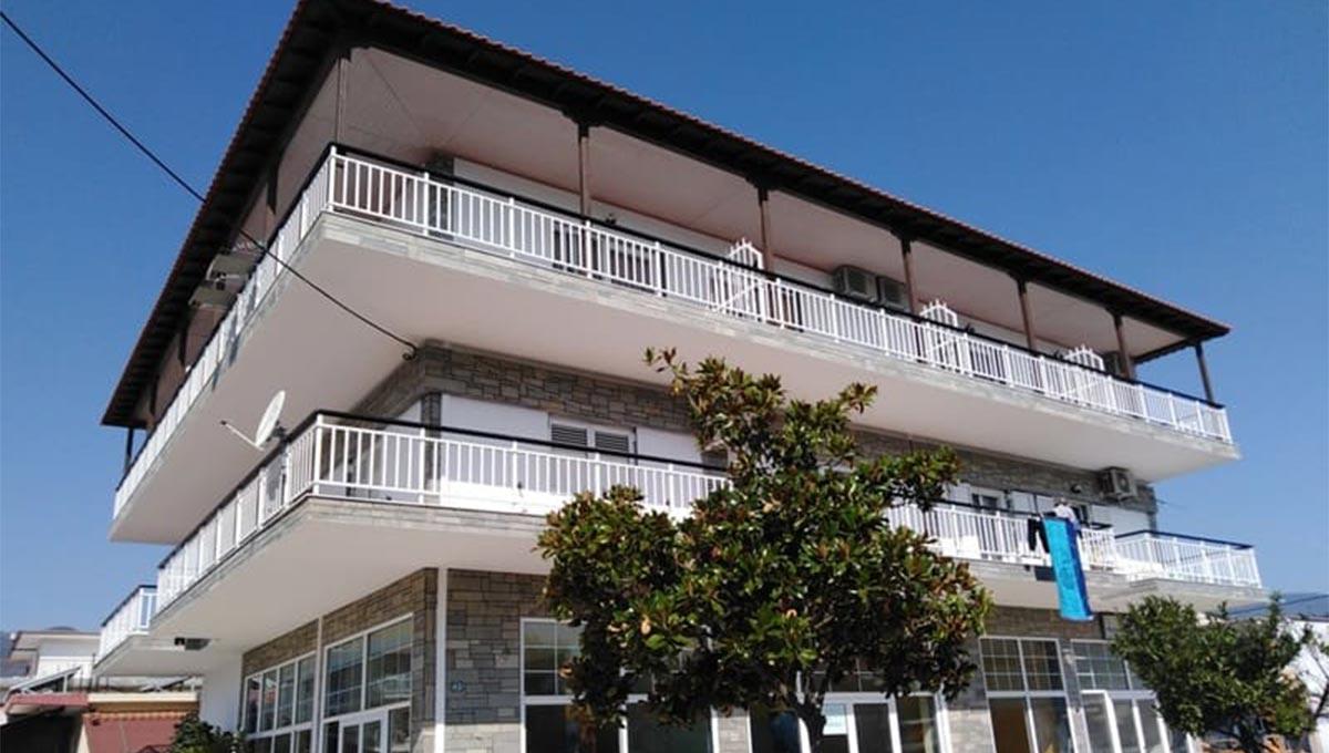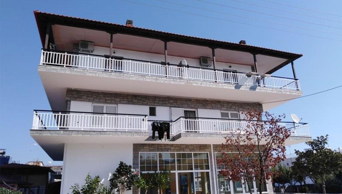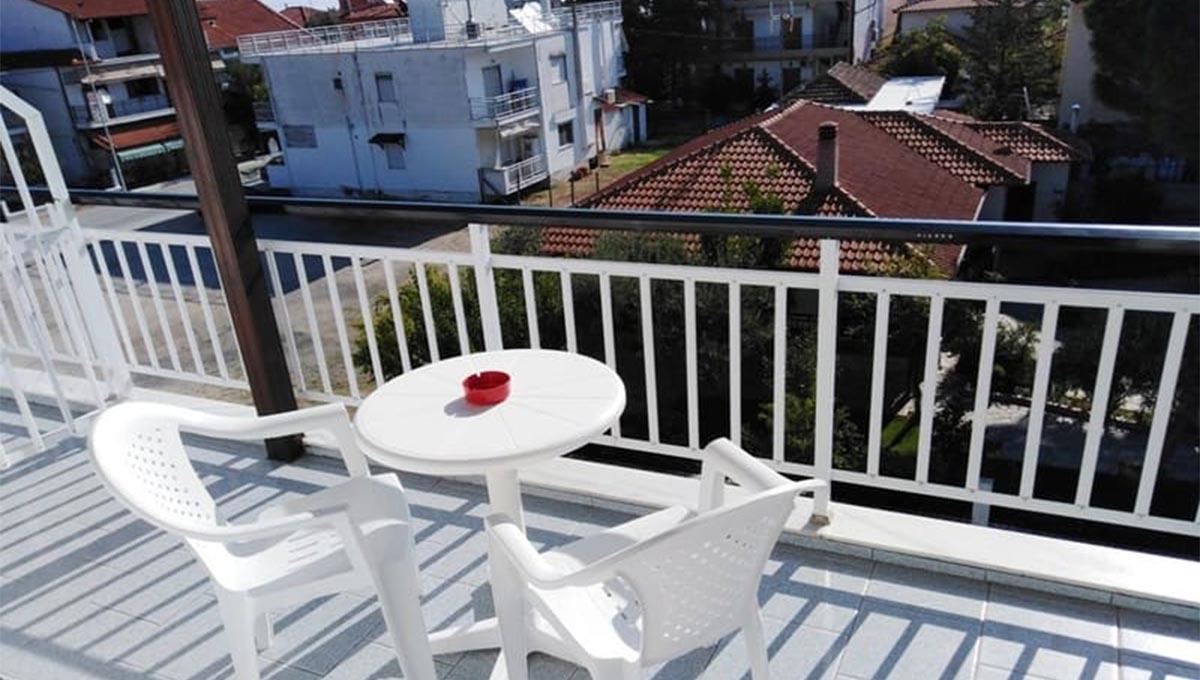 Vila Lafas se nalazi u Nea Vrasni, na oko 100m udaljenosti od uređenog šetališta pored plaže. Apartmanski smeštaj vile Lafas podrazumeva dvokrevetne (dva široka singl kreveta), trokrevetne (jedan francuski i jedan široki singl krevet) i četvorokrevetne studije (dva francuska kreveta), smeštene na drugom spratu objekta. Sve smeštajne jedinice vile Lafas, iz ponude "Letovanje Grčka – Nea Vrasna apartmani", opremljene su kuhinjom (rešo sa jednim ili dva grejna polja, manji frižider i osnovni potrebni pribor), kupatilom, TV-om, klima-uređajem (korišćenje uračunato u cenu), kao i terasom sa garniturom za sedenje. Veličina studija je cca 20-22m² + terasa. Vila Lafas nema sopstveni parking.