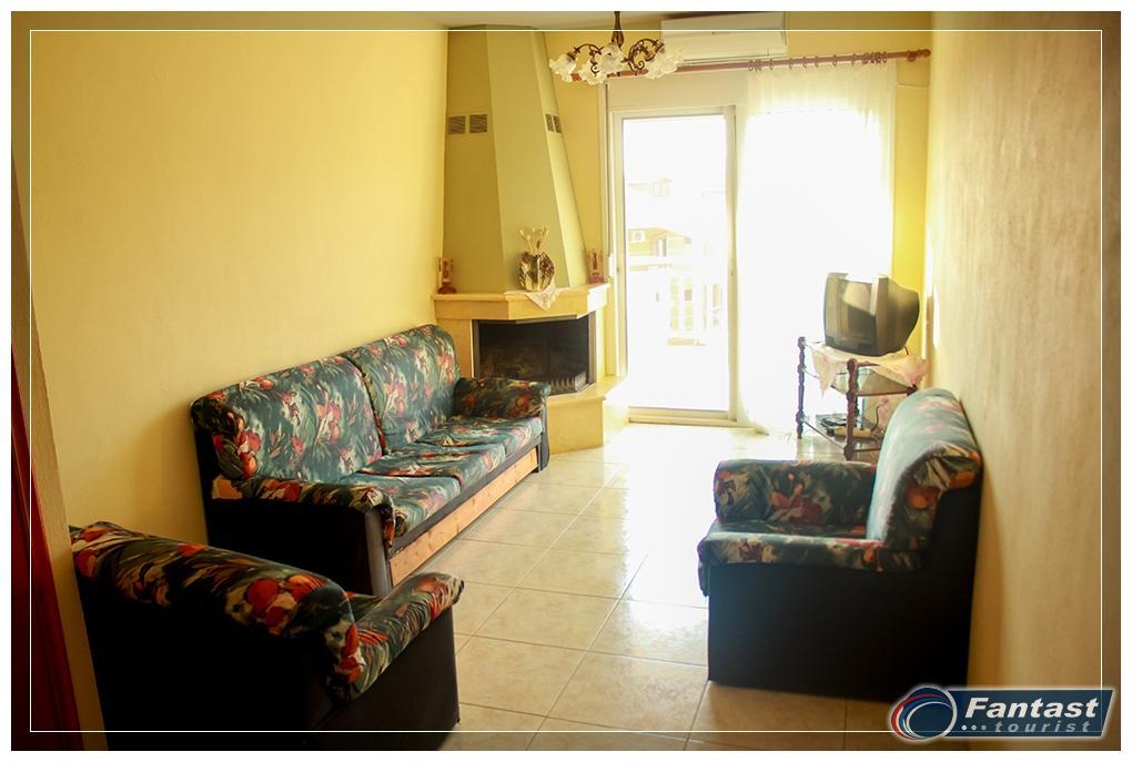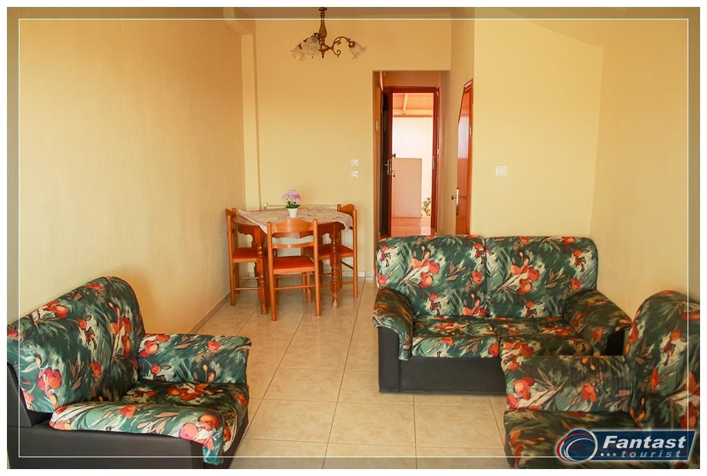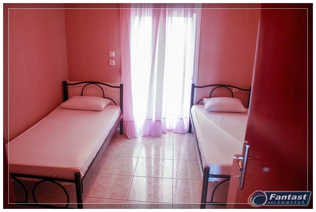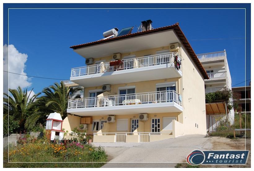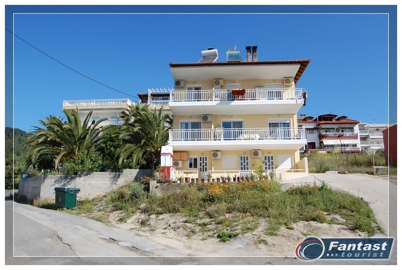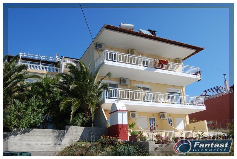 Kuća Lena se nalazi na 130m od mora i oko 70m od glavnog trga, u mirnom delu starog Sartija odmah preko puta kuće Fotini i kuće Olga. Na prvom spratu se nalazi mezoneta za do šest osoba koja u donjem nivou ima dnevni boravak i wc, a na gornjem nivou kupatilo i dve odvojene spavaće sobe. Kuća ima TV kao i klima uređaj čije se korišćenje posebno doplaćuje. Gostima je na raspolaganju i roštilj u dvorištu kuće.