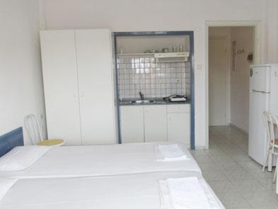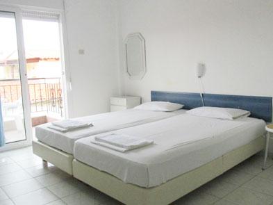 Vila Maria se nalazi na svega desetak metara udaljenosti od plaže i glavnog gradskog šetališta Pefkohorija, mesta na Halkidikiju idealnog za letovanje u Grčkoj. Smeštajne jedinice u vili Maria nalaze se na prvom spratu objekta. Ovi četvorokrevetni apartmani, takoreći na samoj plaži u Pefkohoriju, sadrže odvojeni trpezarijski deo sa kuhinjom (rešo sa jednim ili dva grejna polja, frižider i osnovni potrebni pribor), dve spavaće sobe (mogu i ne moraju biti odvojene vratima od kuhinjskog dela) sa po dva standardna ili jednim bračnim krevetom, TV, klima-uređaj (uračunat u cenu u periodu 14.06-07.09), kupatilo i terasu sa garniturom za sedenje. U jednoj od spavaćih soba nalazi se garderobni plakar. Veličina apartmana je cca 30m2 + terasa. Vila Maria nema sopstveni parking.