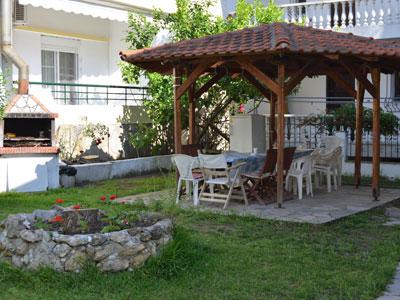 Sastoji se od nekoliko vila, u lepom, zelenom ambijentu, okruženih cvećem i mediteranskim rastinjem… U lepom, mirnom dvorištu se nalazi trem sa stolom i stolicama, zajednički zidani roštilj i tuš. Vila Papadopulos se nalazi na oko 400 metara od centra Polihrona, u mirnom delu (prema Haniotiju) i na oko 190 metara od plaže. Apartmani se nalaze na visokom prizemlju i prvom spratu, imaju SAT TV sa najmanje jednim srpskim kanalom, klima uredjaj i bežičnim internetom (uračunati u cenu) i velikim frižiderom sa zamrzivačem u kuhinji. Trokrevetni + 1 apartmani se nalaze na visokom prizemlju i prvom spratu, imaju jednu spavaću sobu sa dva standardna ležaja, kuhinju (mali šporet sa rernom) sa jednim ležajem iz kojeg se izvlači dodatni ležaj (skoro kao pravi), kupatilo i terasu sa garniturom za sedenje. Veličina apartmana je cca 23 kvm + terasa. Trokrevetni + 2 apartman se nalazi na visokom prizemlju i sastoji se od kuhinje (mali šporet sa rernom) u kojoj se nalazi sofa na otvaranje (za jednu odraslu osobu ili dvoje dece do 12 godina), spavaće sobe sa jednim standardnim i jednim francuskim ležajem, kupatila sa manjom kadom i dve terase, sa jednom garniturom za sedenje. Sofa koja se otvara u kuhinji bitno smanjuje prostor i komfor, te je potrebno da tokom dana bude sklopljena. Veličina apartmana je cca 23 kvm + terase. Četvorokrevetni + 2 apartman se nalazi na prvom spratu, ima spavaću sobu sa francuskim ležajem, kuhinju (šporet sa rernom) sa sofom i proširenim ležajem (oba ležaja za jednu odraslu osobu ili dvoje dece do 12 godina), kupatilo i veliku terasu sa garniturom za sedenje. Veličina apartmana je cca 26 kvm + terasa. Vila Papadopulos je B kategorije, nema peškire, a besplatan parking se nalazi preko puta vile ili niže ka moru.
