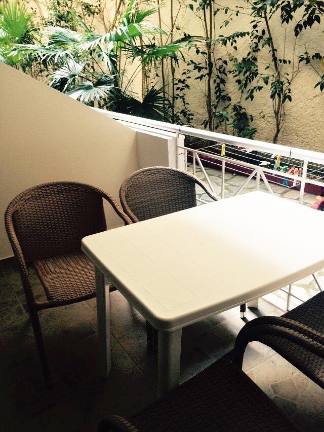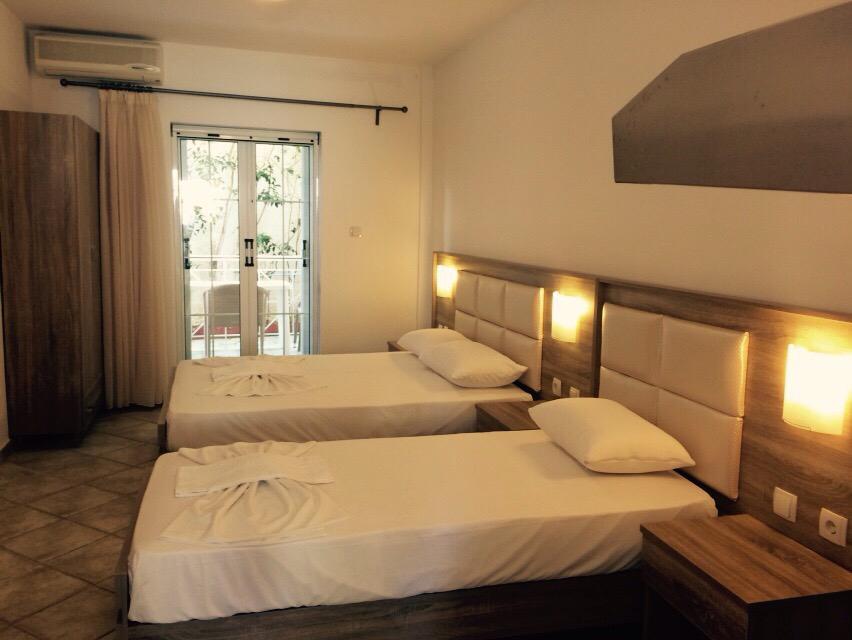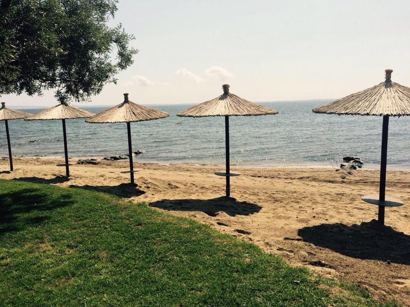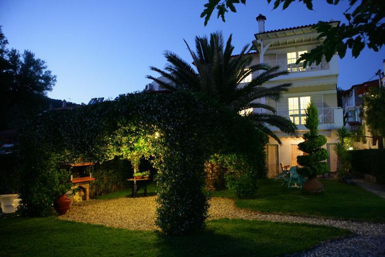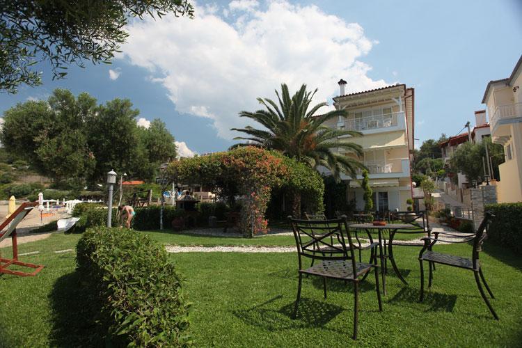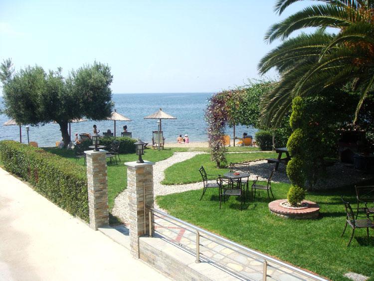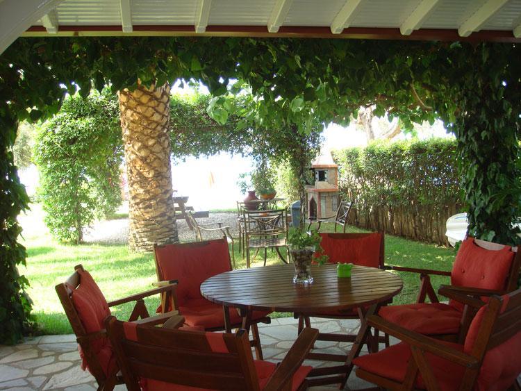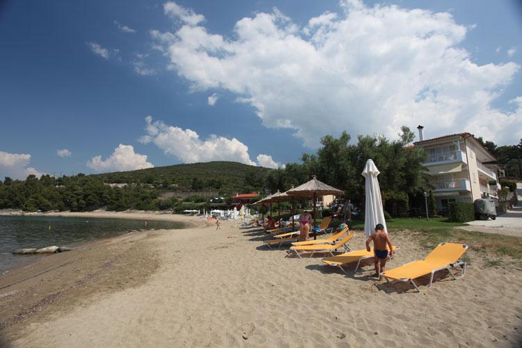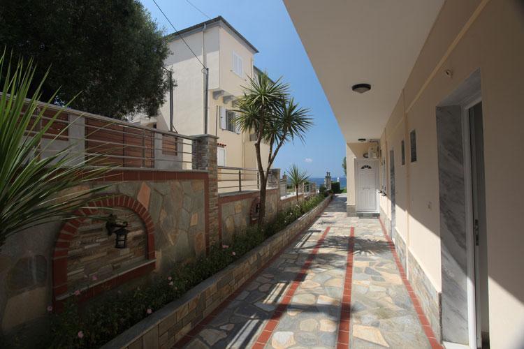 Nalazi se na samoj plaži Psakoudie. Glavne prednosti ove kuće su prelepo dvorište sa puno zelenila i skoro pa privatna plaža sa ležaljkama i suncobranima koje su (u ograničenom broju) na usluzi gostima bez naknade. Studiji i apartmani su u prizemlju i na drugom spratu. Svi imaju TV, internet i klima uredjaj čije je korišćenje uključeno u cenu.
