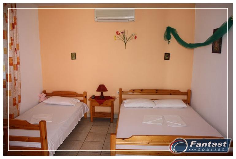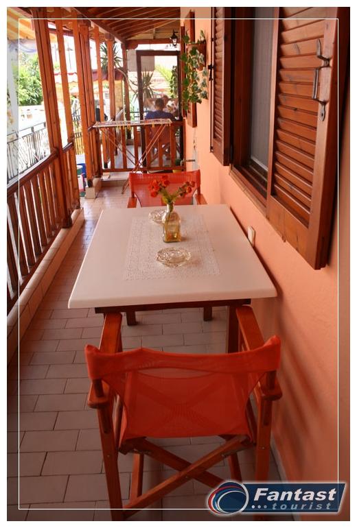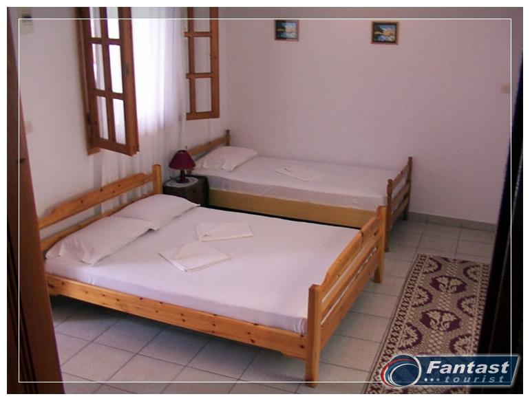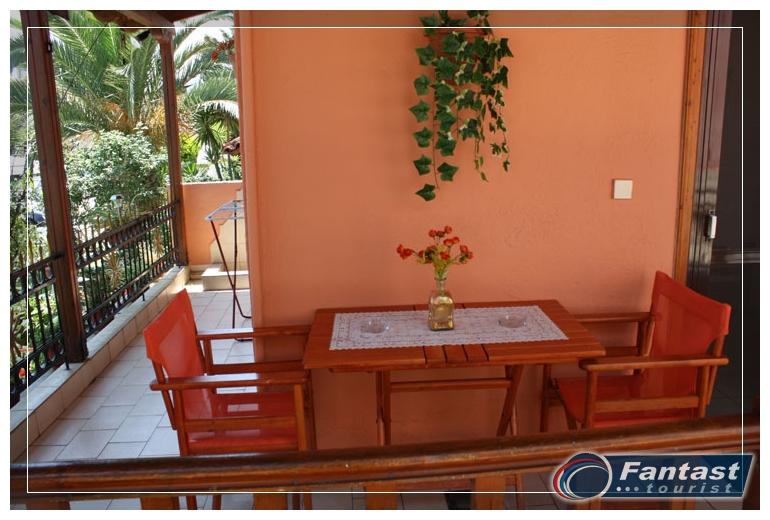 Nalazi se na 120m od plaže u mirnom delu Sartija. Dva trokrevetna apartmana su u parteru, uvučena od ulice, a dva dvokrevetna studija i trokrevetni apartman su na prvom spratu. Svi apartmani imaju TV i klima uređaj čije se korišćenje doplaćuje, kao i signal za besplatno korišćenje bežičnog interneta. Klima je uključena u cenu samo u studiju br.5 koji je za dve osobe i nešto manje kvadrature