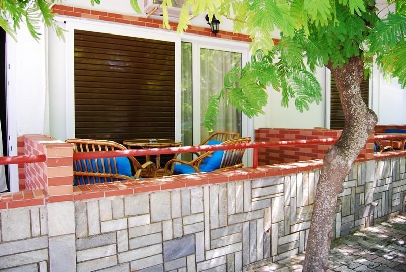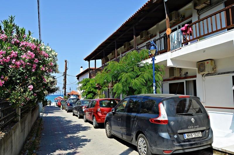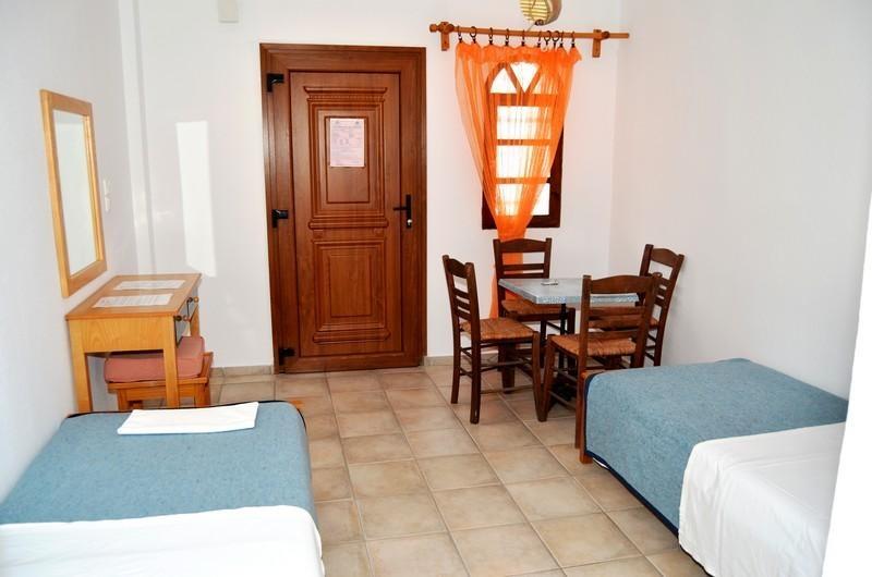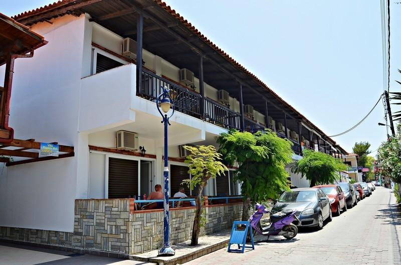 RIGAKIS MOL -Nalazi se u lepom ambijentu, okružen cvećem i zelenilom, u ulici koja vodi ka molu, na svega oko 20 metara od plaže. Zahvaljujući izvanrednoj lokaciji, zelenoj površini - dvorištu iza apartmana, prizemnim, ali i apartmanima na prvom spratu, idealni su za porodice sa dvoje dece ili četiri odrasle osobe. Četvorokrevetni apartmani Rigakis Mol sastoje se od dve spavaće sobe (od kojih se kroz jednu ulazi u apartman, ima dva standardna ležaja ili francuski i bez vrata ka prolaznoj kuhinji, a druga ima izlaz na terasu i ima francuski ležaj ili dva standardna), male kuhinje, kupatila (od kojih su neka renovinarana) i velike terase sa garniturom za sedenje sa bočnim pogledom na more, okrenute prema maloj ulici i plaži. Svi apartmani su opremljeni klima uredjajem (uz doplatu na licu mesta) i TV - om. Veličina apartmana je cca 35 kvm + terasa. Vila Rigakis Mol je B kategorije, nema peškire i nema mogućnost sopstvenog parkinga
