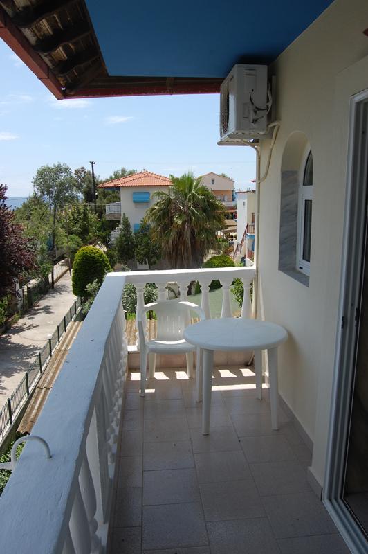 Kuća se nalazi na 40 metara od mora, odmah iza kuće Sakis III. Svi studiji i apartmani se nalaze na spratu. Kuća ima trokrevetne studije sa mogućnošću korišćenja pomoćnog ležaja i dva petokrevetna apartmana. Svi studiji i apartmani imaju SAT TV i klima uređaj čije je korišćenje uključeno u cenu, kao i signal za besplatno korišćenje bežičnog interneta. Gosti kuće Sakis II mogu koristiti usluge taverne kuće Sakis I.