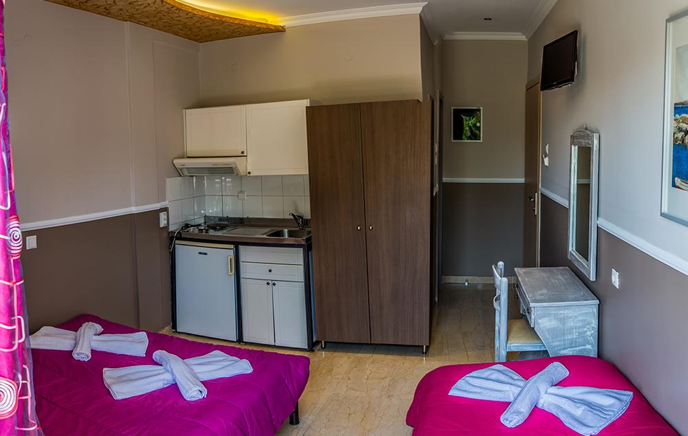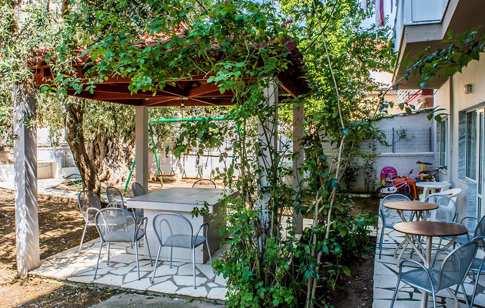 Opis: Vila poseduje dvorište sa bujnom vegetacijom, delom za sedenje i roštiljem, javni parking je udaljen 100m od vile. U našoj ponudi su dvokrevetna i trokrevetna studija koja se nalaze na prvom spratu. Svaka smeštajna jedinica ima opremljen kuhinjski deo, kupatilo/wc, peškire, terasu, WiFi internet, SAT TV, klima uređaj (uz doplatu na licu mesta, od 5€ dnevno). Postoji mogućnost da se, po potrebi, u studio ubaci krevetac za bebe (bez doplate).