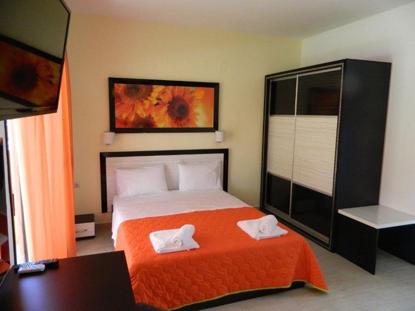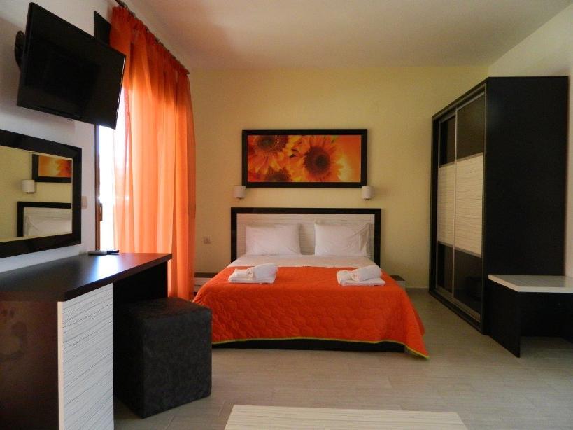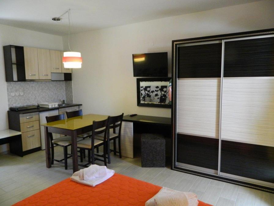 Smeštaj: studiji za smestaj 2 do 5 osoba, smešteni u nekoliko zgrada (prizemlje, visoko prizemlje i prvi sprat). Svi studiji poseduju LCD TV , SAT TV, besplatan WI-FI internet, kompletno opremljenu kuhinju, klima uredjaj ( koriščenje uključenu o cenu ), veoma prostrane terase.