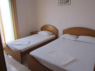 Vila Vasilas se nalazi na plaži, u centru letovališta, blizu crkve. Starijeg je datuma, a prvi sprat je renoviran pre nekoliko godina (osim studija broj 7 i 8, dvokrevetni manji studiji). Ono što posebno izdvaja ovu vilu, to je njena izuzetna pozicija i studiji i apartmani koji svi imaju pogled na more, direktan ili bočni. Dvokrevetni i prostrani trokrevetni studiji su sa TV-om, klima uredjajem (uz doplatu na licu mesta), sastoje se od opremljene kuhinje, dela za spavanje sa dva ležaja ili francuskim i standardnim ležajem, kupatila i lepih terasa sa garniturom za sedenje. Veličina studija je cca 18 – 25 kvm + terasa. Četvorokrevetni, petokrevetni i šestokrevetni apartman se sastoji iz prostorije sa kuhinjom u kojoj su takodje, francuski i standardni ležaj i spavaće sobe sa francuskim i standardnim ležajem (u svakoj prostoriji se nalazi poseban klima uredjaj i TV), kupatila i velike prostrane terase sa direktnim ili bočnim pogledom na more. Veličina apartmana je cca 30 kvm + terasa. Šestokrevetni duplex apartman se sastoji iz kuhinje, dve spavaće sobe sa po francuskim i standardnim ležajem (u svakoj sobi se nalazi poseban klima uredjaj i TV), kupatila i velike prostrane ugaone terase sa direktnim i bočnim pogledom na more. Veličina apartmana je cca 30 kvm + terasa. U vili Vasilas, prvi sprat je B+ kategorije, a drugi B kategorije i ima mogućnost sopstvenog parkinga preko puta vile.