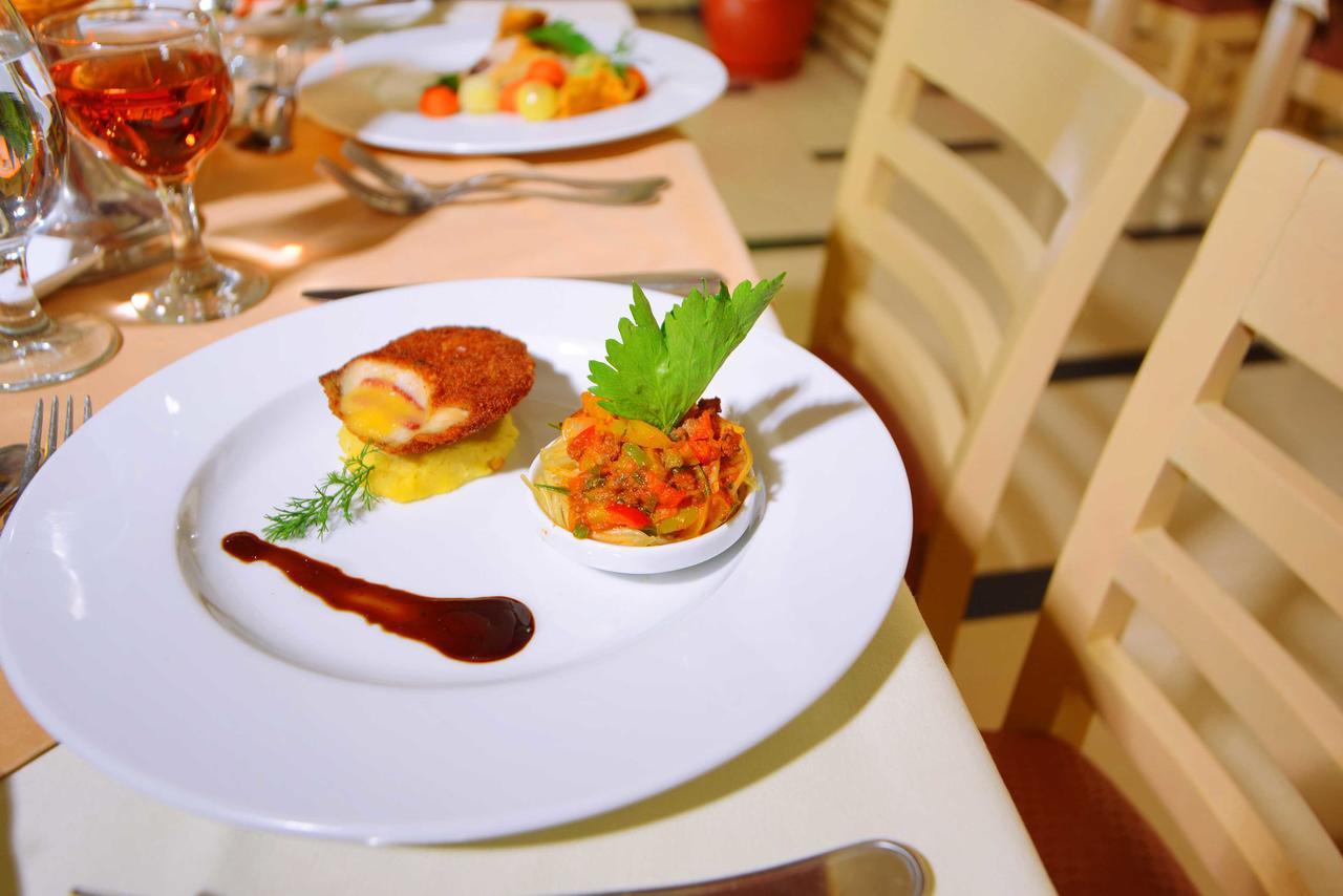 Usluga u hotelu je All Inclusive – doručak, kasni doručak, ručak i večera (samoposluživanje – izbor više jela po hotelskim pravilima). Hotel u ponudi ima italijanski restoran Alfredo i azijski restoran Mandarin, kao i nekoliko barova – Columbus Bar, Olympus Pool Bar, Sports Bar, Reds Sky Bar (u hotelu Beach Albatros Resort) i diskoteku (u hotelu Aqua Blu). U konceptu su i užine, sladoled (u Food Court u hotelu Aqua Blu), lokalna alkoholna i bezalkoholna pića.