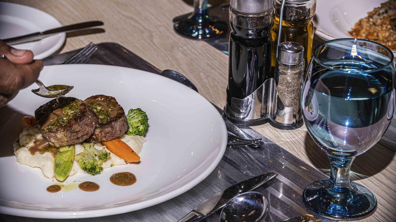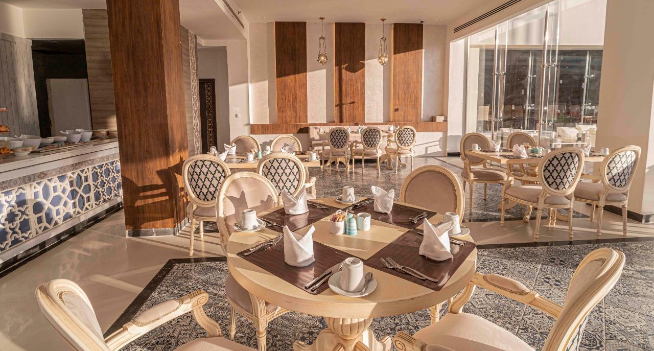 Usluga u hotelu je All inclusive – rani doručak, doručak, kasni doručak, ručak, večera, kasna večera (samoposluživanje – izbor više jela po hotelskim pravilima). Pored glavnog restorana, hotel u ponudi ima i dva a la carte restorana – Zeina (orijentalna kuhinja) i Luca Toni (italijanska kuhinja). Gostima je na raspolaganju i nekoliko barova – Turquoise, Tropicana Bar, Aqua Fun, Sea Shark, Caribbean Bar, Pirates Bar, London Pub i Sky Lounge. U koncept su uključeni sladoled, palačinke, grickalice, kafa, čaj i kolači, lokalna alkoholna i bezalkoholna pića,