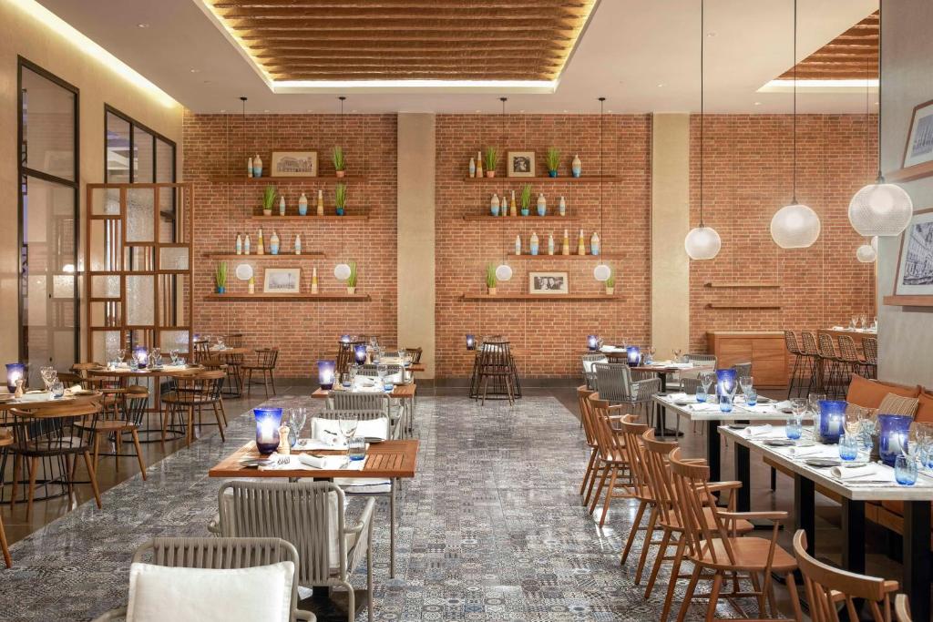 Osim glavnog restorana hotel sadrži i nekoliko a la carte rastorana, Basilico – italijanski restoran, Rocca – restoran azijske kuhinje, Zaytoun Middle Eastern Restaurant & Shisha Lounge Bar – restoran sa tradicionalnim orijentalnim jelima sa Shisha barom, Mashawi Seafood & Beach Snack Restaurant – restoran sa morskim plodovima na plaži.