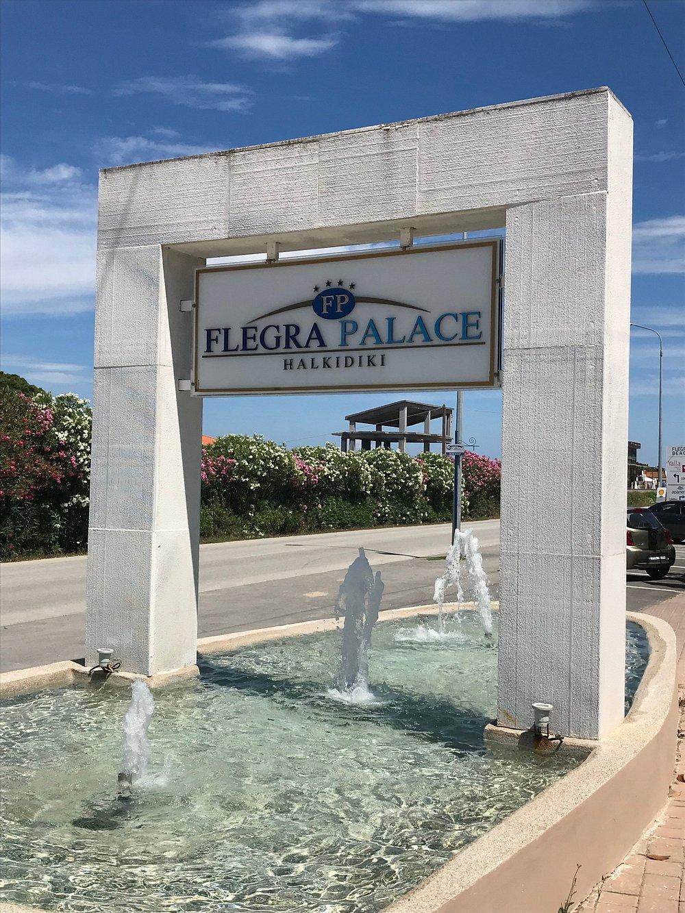 Nedaleko od plaže (150m), na glavnom putu na ulasku u Pefkohori, nalazi se Flegra Palace. Hotelski kompleks se sastoji od 7 manjih zgrada u kojima su smeštene dvokrevetne sobe, junior, executive i grand suite. Hotel je potpuno renoviran 2008 godine otkada dobija 4-tu zvezdicu. Hotel ima bazen, dečiji bazen, dečije igralište, Internet "corner" (uz doplatu na licu mesta), wi-fi Internet u javnim delovima hotela (uz doplatu na licu mesta), bilijar, organizovanu animacija za goste, stoni tenis, restoran, bar iznad bazena, ležaljke i suncobrane oko bazena (bez doplate) i na plaži (uz doplatu oko 5 eur (set: 2 ležaljke i suncobran)), iznajmljivanje peškira (uz depozit od 20 eur)... Sve sobe su različito dekorisane, moderno opremljene klima uredjajem, SAT TV-om i DVD uredjajem, telefonom, sefom (uz doplatu na licu mesta), frižiderom, fenom za kosu, krevecom (na upit, bez doplate), terasom sa garniturom za sedenje i kupatilom. Standardne sobe su veličine cca 20 kvm i namenjene su za 2 osobe (2 standardna ili "francuski" ležaj). Execuitve suite se razlikuju od standardnih soba po luksuznijem nameštaju. Superior sobe su veličine cca 25 kvm i namenjene su za 2-4 osobe (2 standardna ili "francuski" ležaj i 2 sofe). Family suite su veličine cca 35-37 kvm, namenjene su za 2-4 osobe, sastoje se iz spavaće sobe (2 standardna ili "francuski" ležaj) i dnevnog boravka (2 sofe) odvojejenih kliznim vratima. Usluga u hotelu Flegra Palace je noćenje sa doručkom uz mogućnost doplate za polupansion - “švedski sto “ (samoposluživanje).