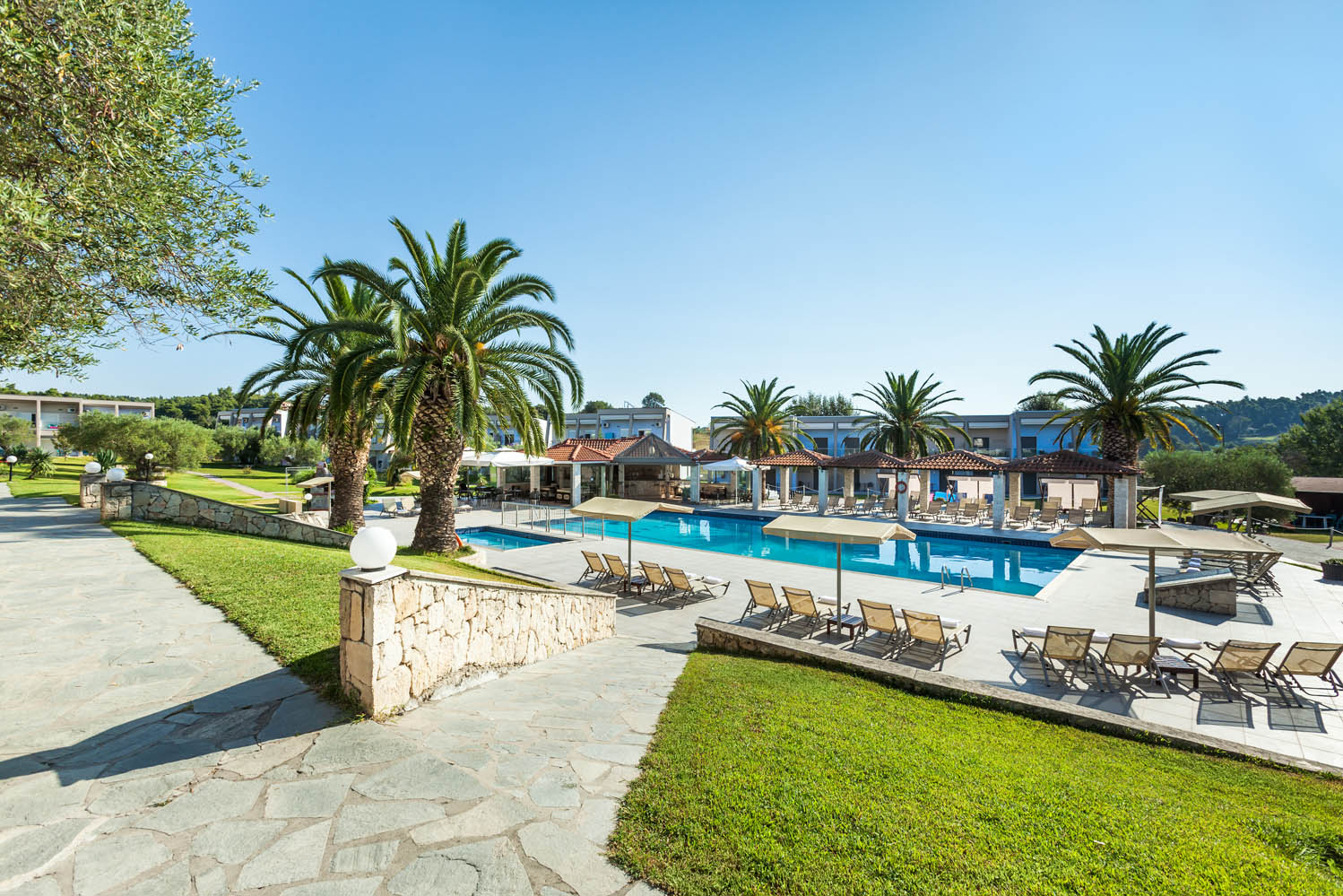 Plaža Sani (Sani Beach) se nalazi na 24 km od hotela, dok je Afitos udaljen 11 km. Najbliži aerodrom je Aerodrom Solun, udaljen 83 km od hotela Iris.