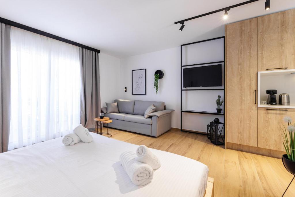 Objekat Kentro Luxury Suites nudi smeštaj sa besplatnim WiFi internetom i besplatnim privatnim parkingom u Haniotiju, u regiji Makedonija, nedaleko od plaža Hanioti i Pefkohori.