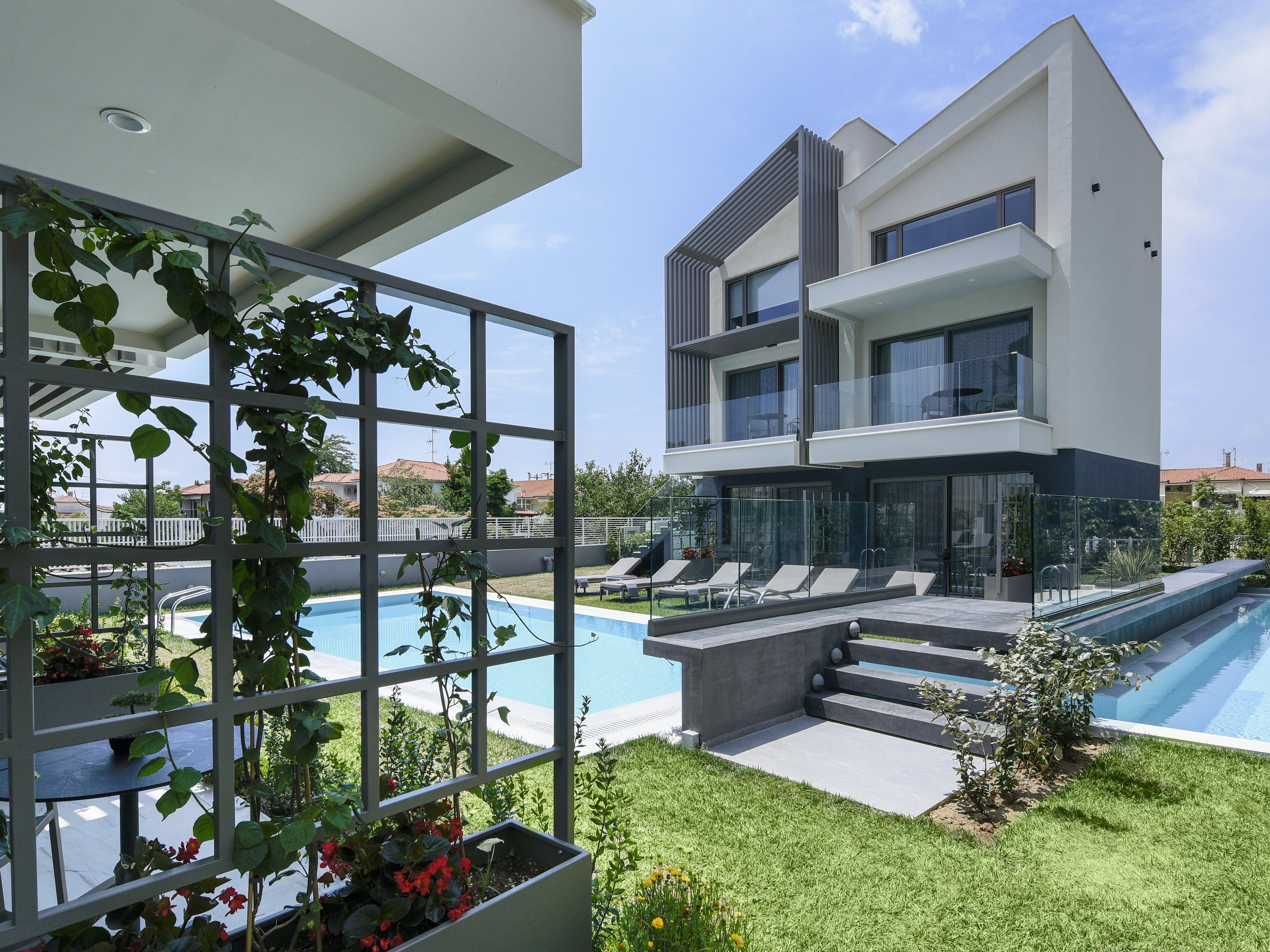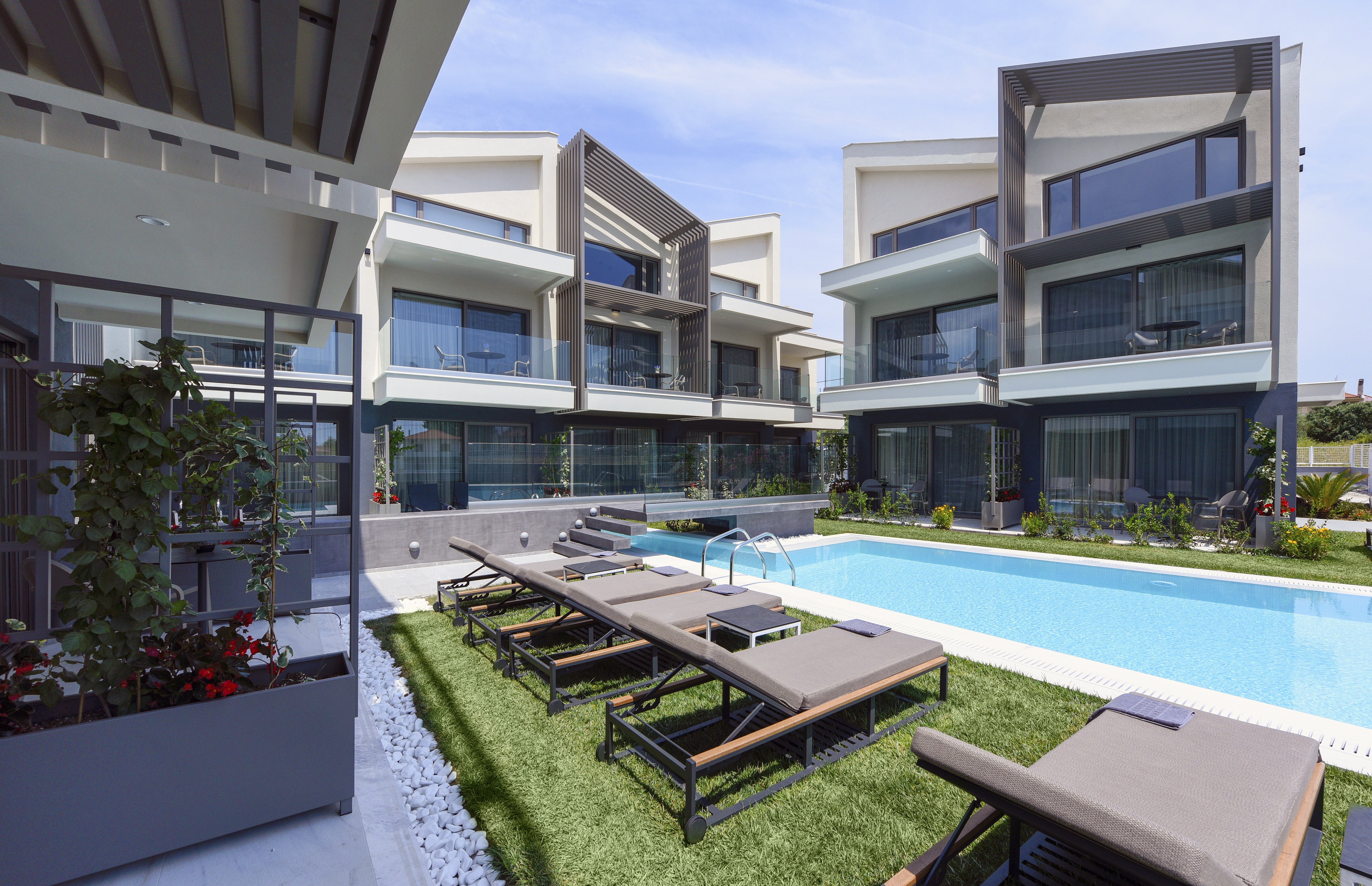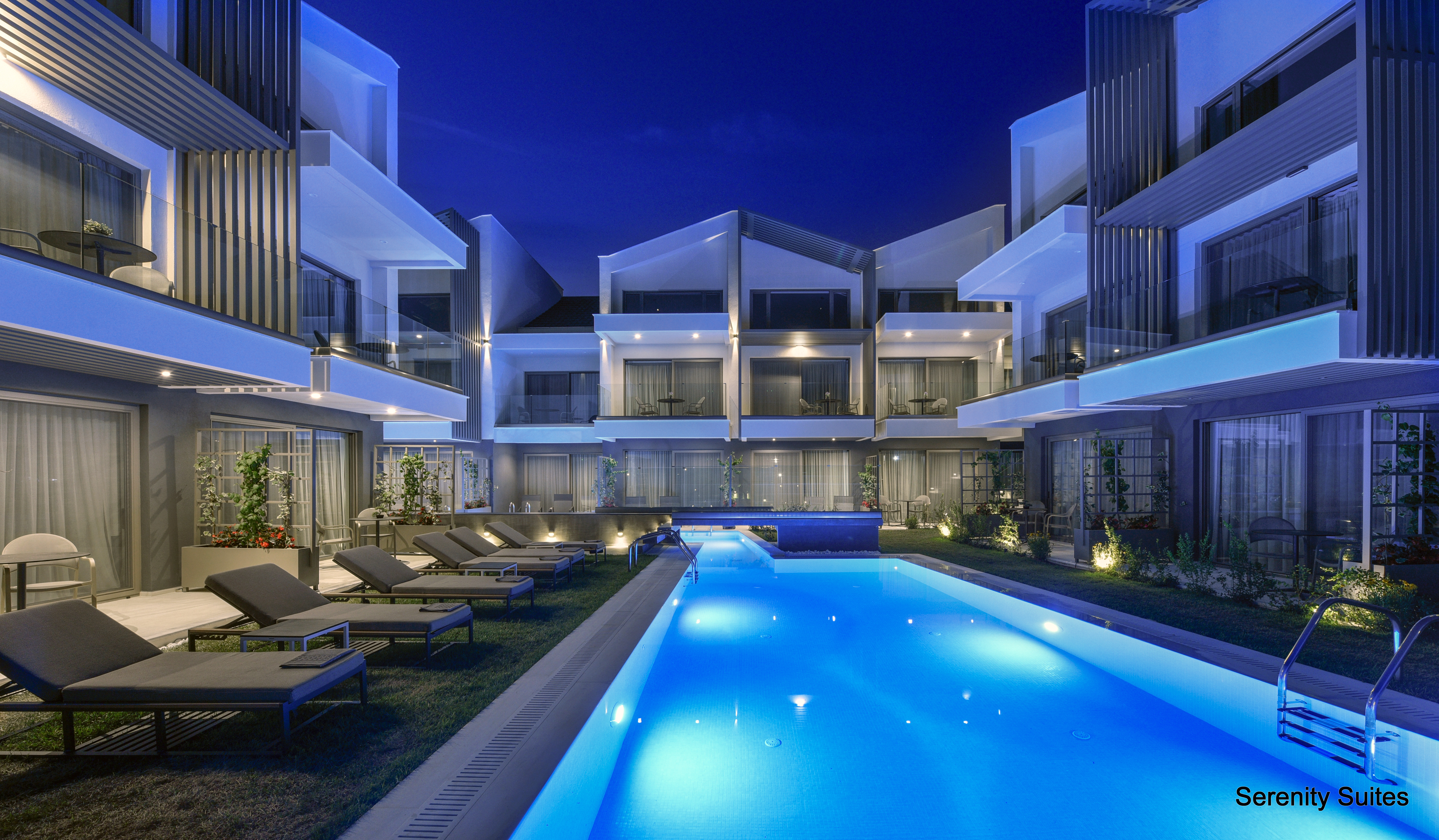 Objekat Serenity Suites 4**** nudi smeštaj sa besplatnim WiFi internetom, popločanim dvorištem ili balkonom i korišćenjem vrta i bazena na otvorenom, a nalazi se u Nikitiju, na 350 metara od plaže Nikiti.