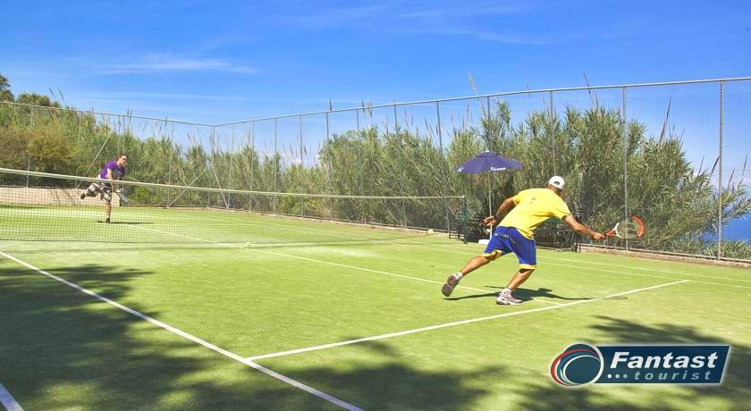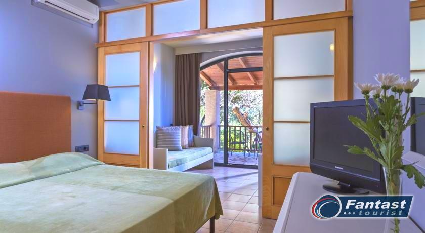 Hotelski sadržaj: recepcija, restoran, bar, dva bazena, ležaljke i suncobrani pored bazena (besplatno), spa i wellness centar, fitness, teniski teren, dečije igralište, mini klub. Hotel ima ukupno 310 soba. Dvokrevetne su u glavnoj zgradi, a bungalovi, koji primaju do 3 osobe su raspoređeni na padinama oko glavne zgrade.