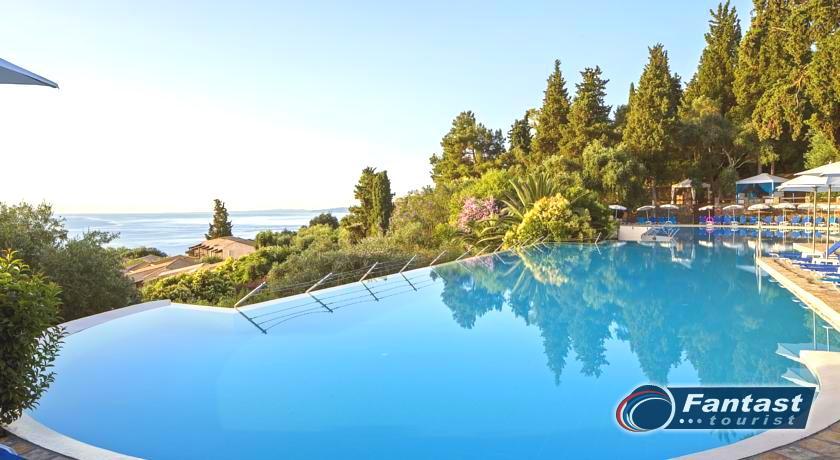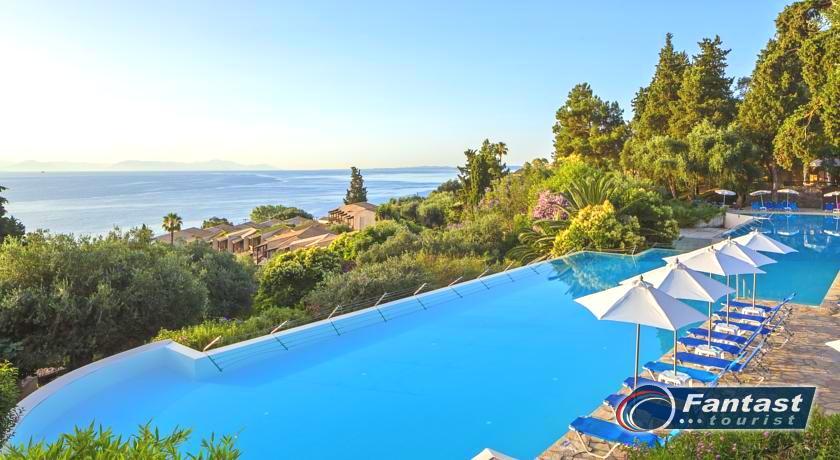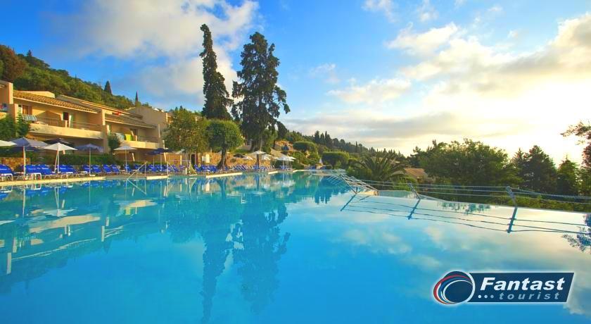 Lokacija: nalazi se na uzvišenju u mestu Perama, oko 100m od peščano-šljunkovite plaže (ulica između). Do plaže se može doći podzemnim prolazom. U neposrednoj blizini hotela postoji market za osnovnu nabavku, restorani i kafići. Od grada Krfa, do kojeg saobraća autobuski prevoz, hotel je udaljen 10km, od Benitsesa 2.5km, a od aerodroma 8km.