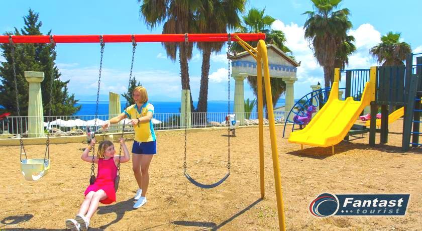 Hotelski sadržaj: recepcija, lobi, Wi-Fi (besplatno u javnim prostorijama hotela), restoran, taverna na plaži, bar na plaži, bazen za odrasle i decu, igralište, ležaljke i suncobrani na plaži su besplatni, mini klub za decu, animacioni program, mini golf, teren za odbojku, teniski teren, mini market.