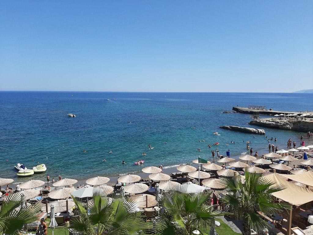 Lokacija: potpuno nov hotel izgrađen 2020 godine, do peščano šljunkovite plaže ga deli šetalište i par stepenika u mestu Hersonisos dok je aerodrom udaljen 25km.