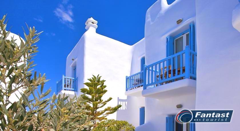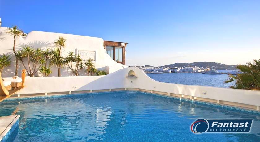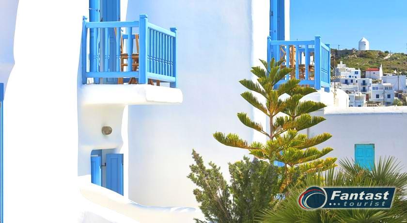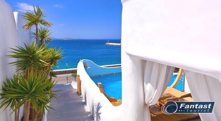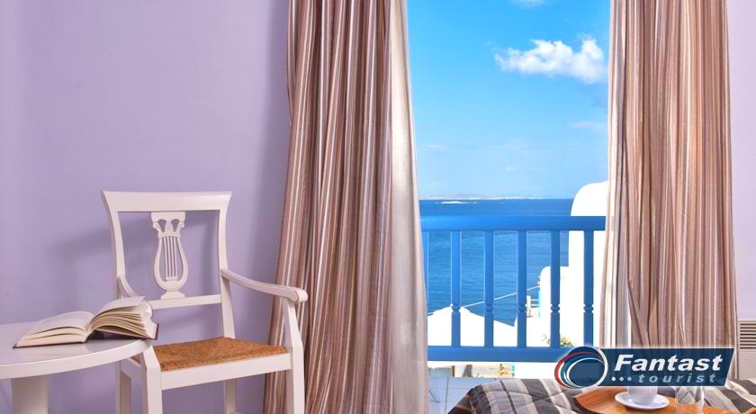 Lokacija: Ovaj hotel je tipičan primer tradicionalnog graditeljstva. Hotel se nalazi u srcu grada Mikonosa, odmah pored luke, 400m od plaže.